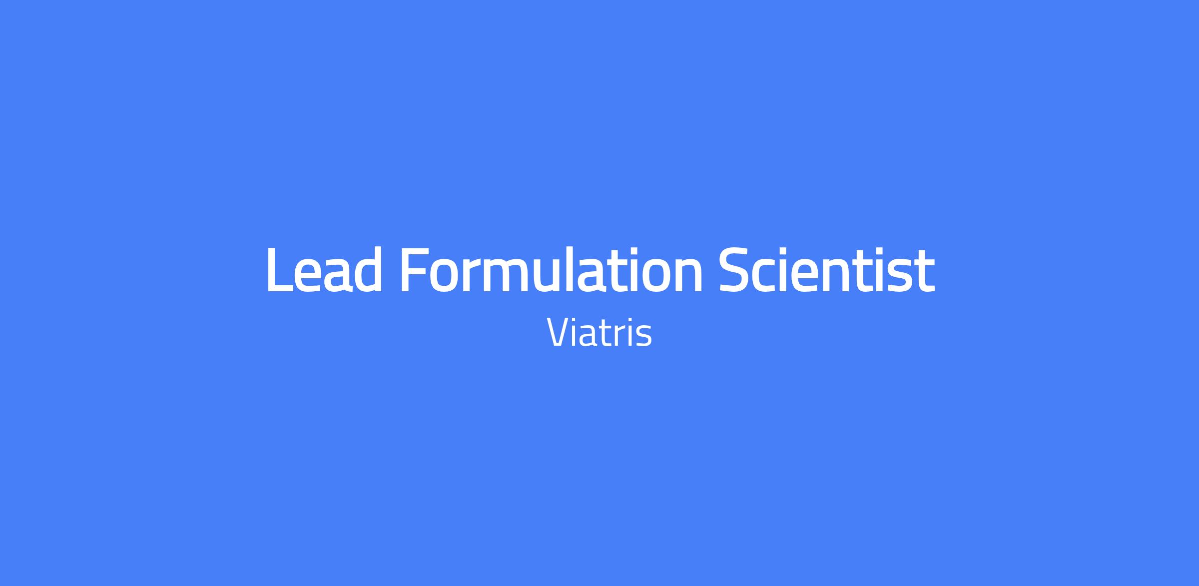 Lead Formulation Scientist responsible for providing technical support of tech transfer activities for existing products, and for designing formulations and processes for new products as part of development, optimization and scale-up efforts. The role also involves preparing and reviewing technical regulatory documents for tech transfer submissions, staying current with federal guidelines and compendial requirements, and maintaining knowledge of cGMPs and safety.