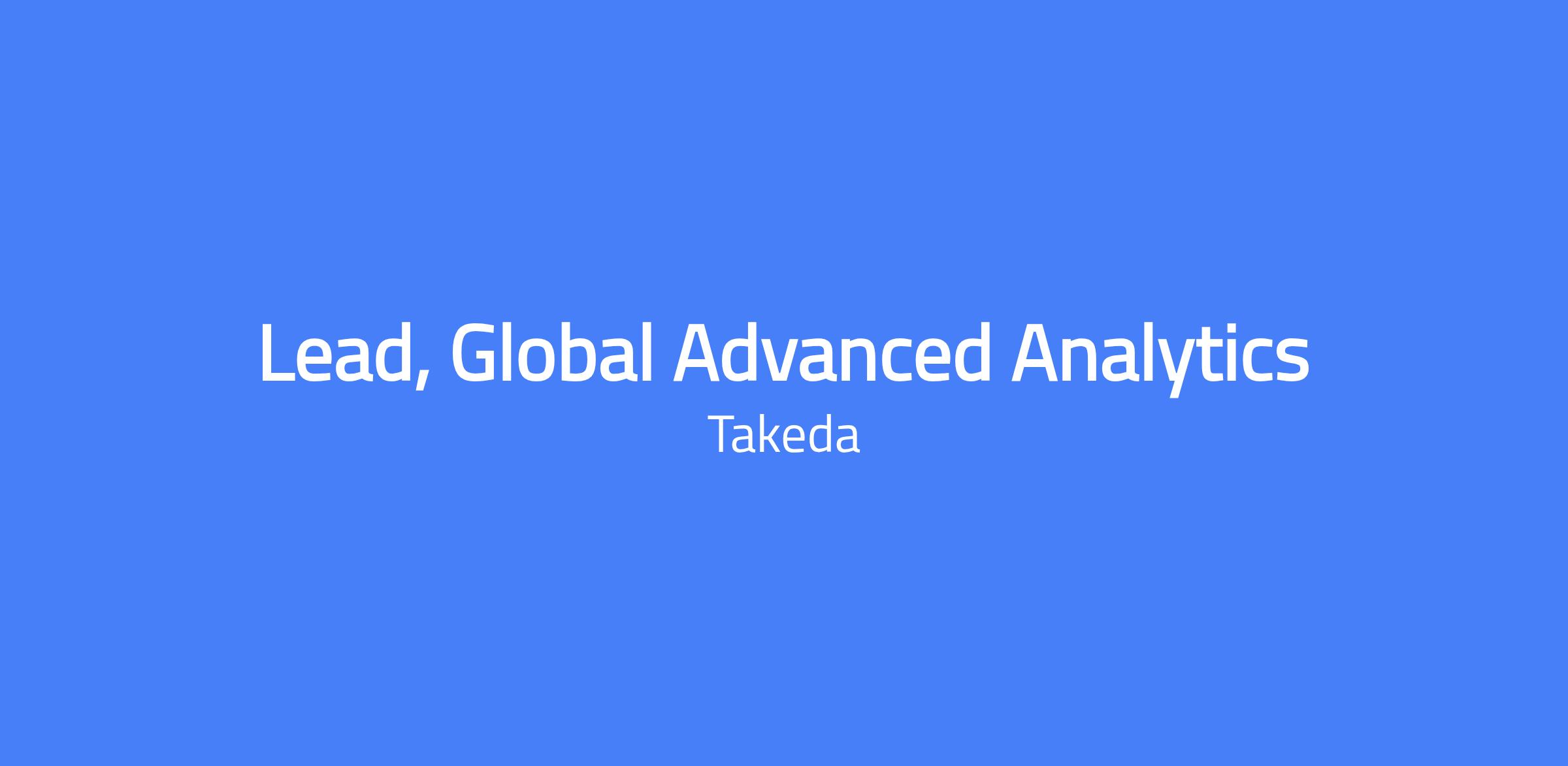 Lead, Global Advanced Analytics, reporting to the Senior Director of Market Research and Advanced Analytics. You will support the transformation of advanced analytics for the global Oncology Business Unit (OBU), design and implement analytics solutions, and drive a data-driven future for Takeda Oncology. The role emphasizes leadership, storytelling, and fluency with GenAI to accelerate advanced analytics capabilities and inform senior leadership strategy. Location is Boston, MA.