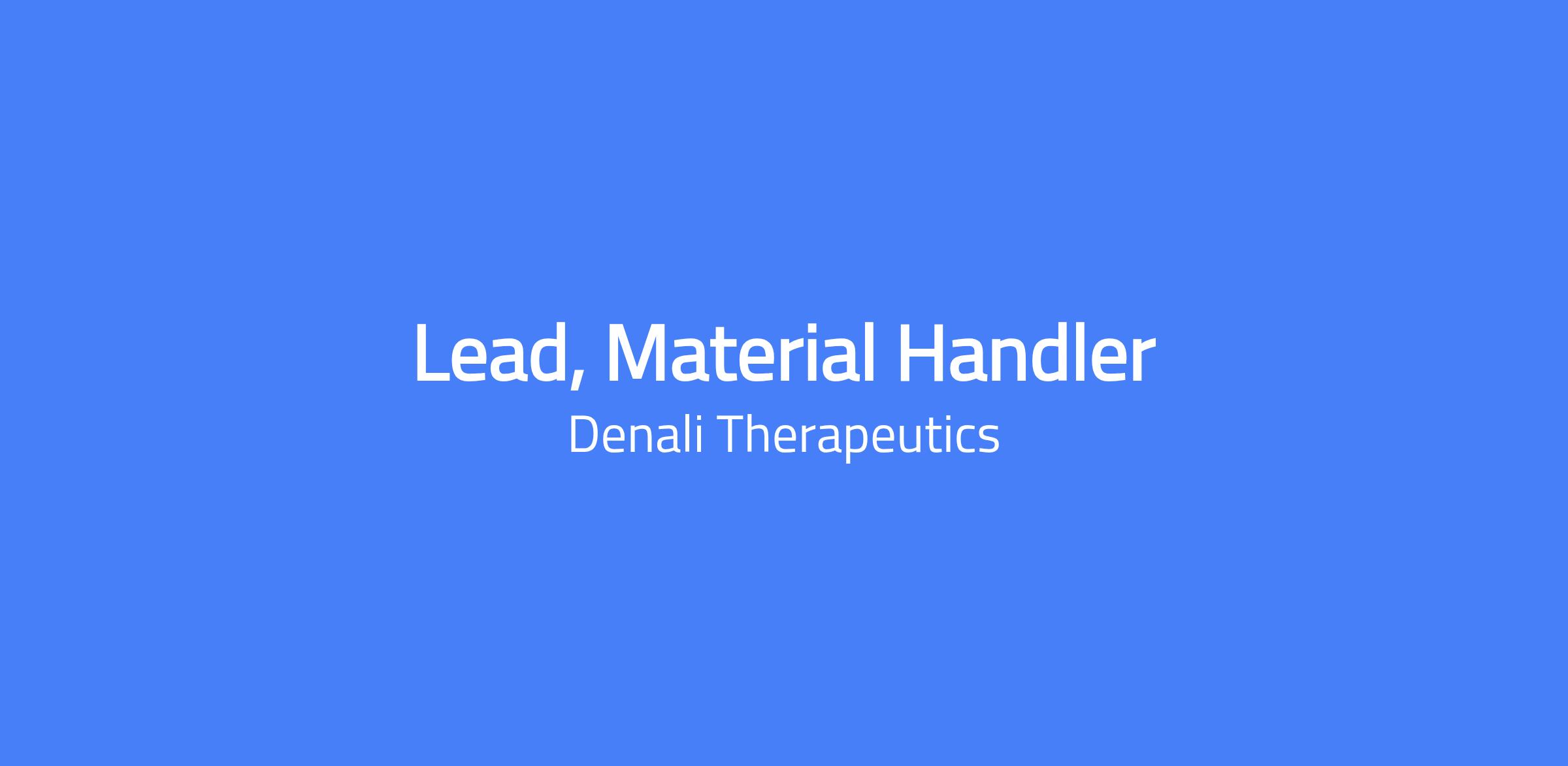 Lead, Material Handler responsible for coordinating warehouse activities in a GMP manufacturing environment, providing support, training, and direction to team members, operating a forklift, moving materials, and aligning daily plans with facility priorities.