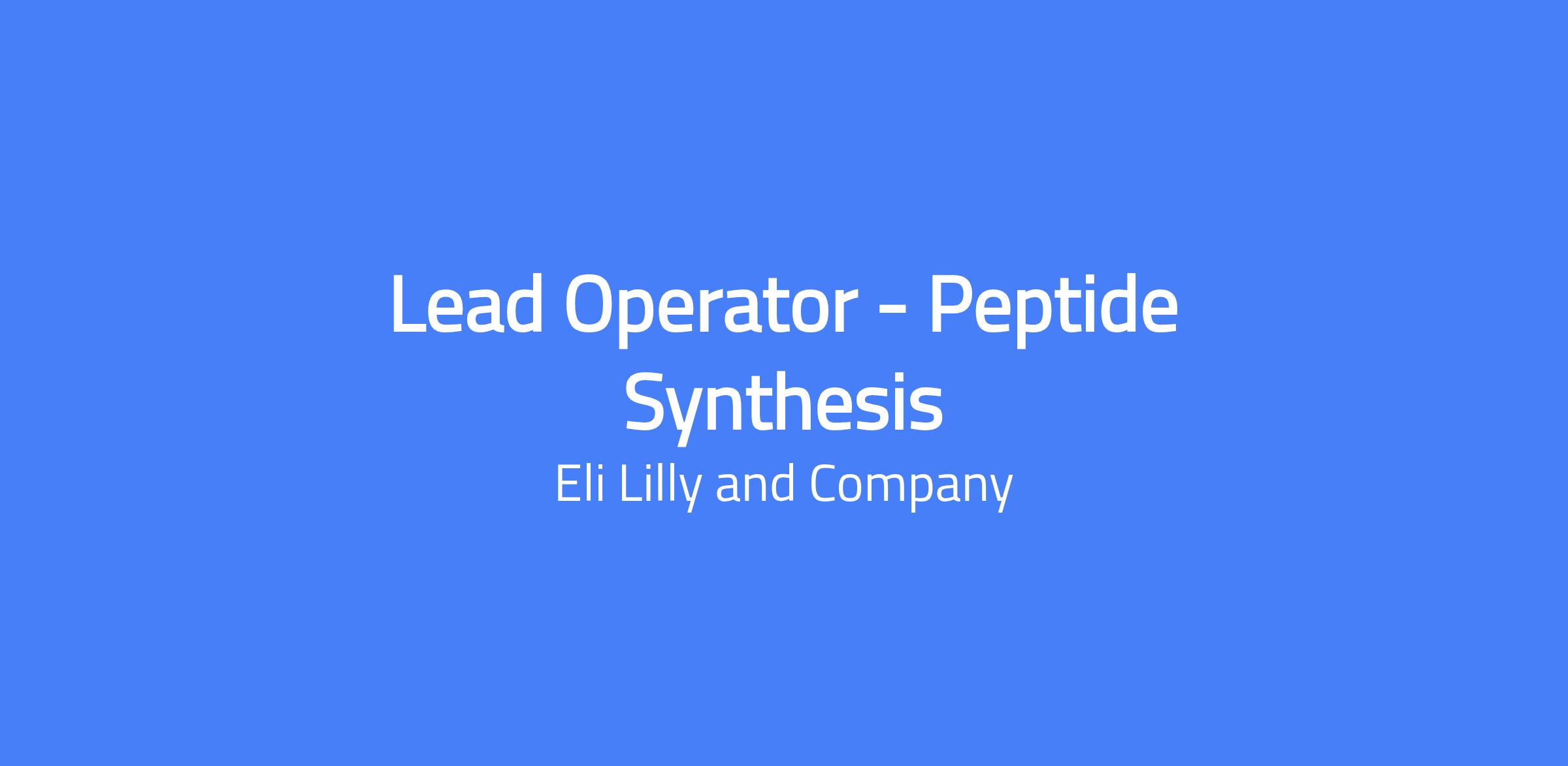 Lead Operator - Peptide Synthesis
