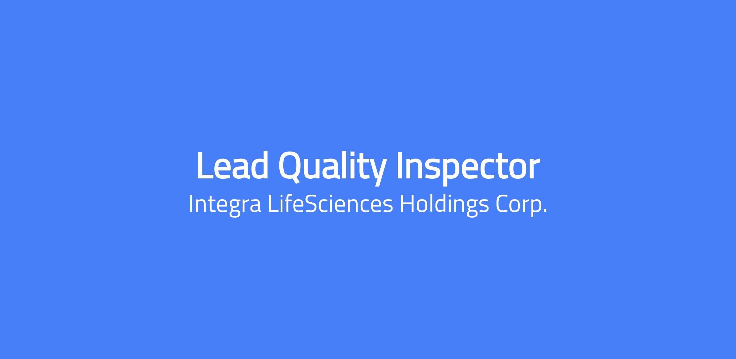 Changing lives. Building Careers. Joining us is a chance to do important work that creates change and shapes the future of healthcare. Thinking differently is what we do best. To us, change equals opportunity. Every day, our colleagues are challenging whatâs possible and making headway to innovate new treatment pathways to advance patient outcomes and set new standards of care. The Lead Quality Inspector serves as a Lead Associate, Quality Inspector for the Plainsboro Manufacturing Site, Collagen Manufacturing Center (CMC). The lead associate is responsible for performing and/or scheduling quality assurance inspections on purchased components, manufactured sub-assemblies and final product. Expectations are to be familiar with and be able to measure critical dimensions as well as to train new quality inspectors and provide guidance to current quality inspectors. Lead Associate, Quality Inspector will perform all duties in accordance with the requirements of overall corporate policies, FDA regulations, ISO 9001, ISO 13485, the medical device directive, and the other applicable regulatory agencies. This is for a Weekend Lead, the Shift is 12 hours on Friday, Saturday and Sunday from 6am to 6:30pm (will be compensated for 40 hours per week) Job Responsibilities Oversee daily activities in the QC department. Prepare the QC Inspection schedule to ensure that all manufacturing areas are covered in order to meet production schedule. Reports any non-conformances in timely manner. Support NCs and CAPA investigations as required. Assist with product flow between departments. Interface with Manufacturing department in order to coordinate inspections of completed product to ensure the inspections are done in a timely manner. Initiate and /or propose revisions to standard operating procedures involving new processes or process improvements. Train QC Inspectors as required. Perform inspections (incoming, in-process, first article, etc.) by using a variety of inspection measuring equipment to determine acceptance or rejection of material or parts. Interpret and work within the guideline of drawings, specifications, charts, procedures, and other date to determine product or material acceptance. Read and interpret sampling plan as per the American National Standard Institute (ANSI). Oversees physical and electronic quarantine locations. May also perform other related duties, responsibilities, and special projects as assigned. DESIRED MINIMUM QUALIFICATIONS Minimum of 5+ years' experience in document and promotional materials management using electronic document management systems or with manual systems using electronic document storage. Minimum of 5+ yearsâ experience in a Quality Systems / Regulatory Compliance environment with a working knowledge preferably in the medical device, diagnostics or pharmaceutical industries. Familiarity with FDA regulations and ISO series of quality standards preferred. Capable of both written and verbal effective communication skills. Proficient in the Microsoft Office suite of products. Proficient in Oracle R12/Agile preferred. Salary Pay Range: $26.21 - $35.38 USD Hourly Our salary ranges are determined by role, level, and location. Individual pay is determined by several factors including job-related skills, experience, and relevant education or training. In addition to base pay, employees may be eligible for bonus, commission, equity or other variable compensation. Your recruiter can share more about the specific salary range for your preferred location during the hiring process. Additional Description for Pay Transparency: Subject to the terms of their respective plans, employees and/or eligible dependents are eligible to participate in the following Company sponsored employee benefit programs: medical, dental, vision, life insurance, short- and long-term disability, business accident insurance, and group legal insurance, and savings plan (401(k)). Subject to the terms of their respective policies and date of hire, Employees are eligible for the following https://jobs.integralife.com/total-rewards/ Integra LifeSciences is an equal opportunity employer, and is committed to providing equal employment opportunities to all qualified applicants and employees regardless of race, marital status, color, religion, sex, age, national origin, sexual orientation, physical or mental disability, or protected veteran status. This site is governed solely by applicable U.S. laws and governmental regulations. If you'd like more information on your rights under the law, please see the following notices: EEO Is the Law | EOE including Disability/Protected Veterans Integra LifeSciences is committed to provide qualified applicants and employees who are disabled veterans or individuals with disabilities with needed reasonable accommodations in accordance with the ADA. If you have difficulty using our online system due to a disability and need an accommodation, please email us at careers@integralife.com. Unsolicited Agency Submission Integra LifeSciences does not accept unsolicited assistance from search firms for employment opportunities. All CVs/resumes submitted by search firms to any employee at our company without a valid written search agreement in place for this position will be deemed the sole property of our company. No fee will be paid in the event a candidate is hired by our company as a result of an agency referral where no pre-existing agreement is in place. A formal written agreement is required before engaging any agency, and it must be executed and authorized by the Vice President, Talent Acquisition. Where agency agreements are in place, introductions (the initial sharing of a candidateâs name, resume, or background) are position-specific and may only occur within the scope of that approved agreement. Please, no phone calls or emails. Integra - Employer Branding from Integra LifeSciences on Vimeo Changing Lives. Building Careers. Integra LifeSciences, a world leader in me