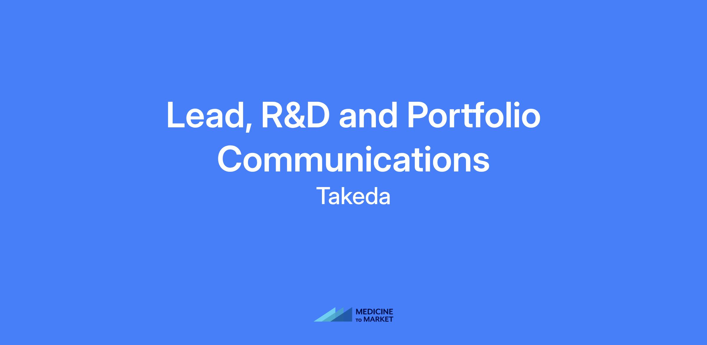 Lead, Research & Development (R&D) and Portfolio Communications (Associate Director Level) in Cambridge, MA. The R&D and Portfolio Communications team leads communications for Takeda’s pipeline and marketed/established brands portfolio across specific therapeutic areas. The individual in this role will be empowered to create, implement, unify, and deploy Takeda’s external and internal positioning to protect and enhance our reputation. This position plays a crucial role in ensuring our communications align with our mission to provide life-transforming treatments.