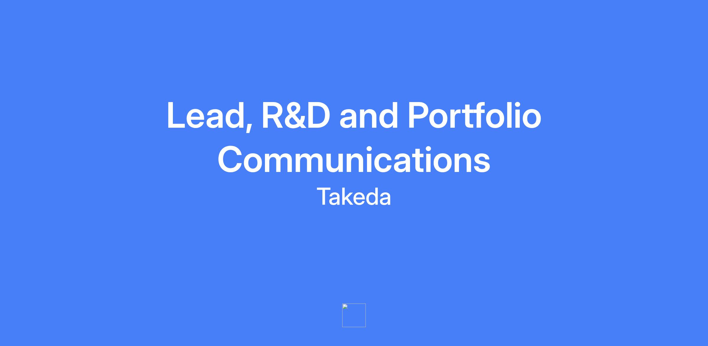 Lead, Research & Development (R&D) and Portfolio Communications (Associate Director Level) in Cambridge, MA. The R&D and Portfolio Communications team leads communications for Takeda’s pipeline and marketed/established brands portfolio across specific therapeutic areas. The individual in this role will be empowered to create, implement, unify, and deploy Takeda’s external and internal positioning to protect and enhance our reputation. This position plays a crucial role in ensuring our communications align with our mission to provide life-transforming treatments.