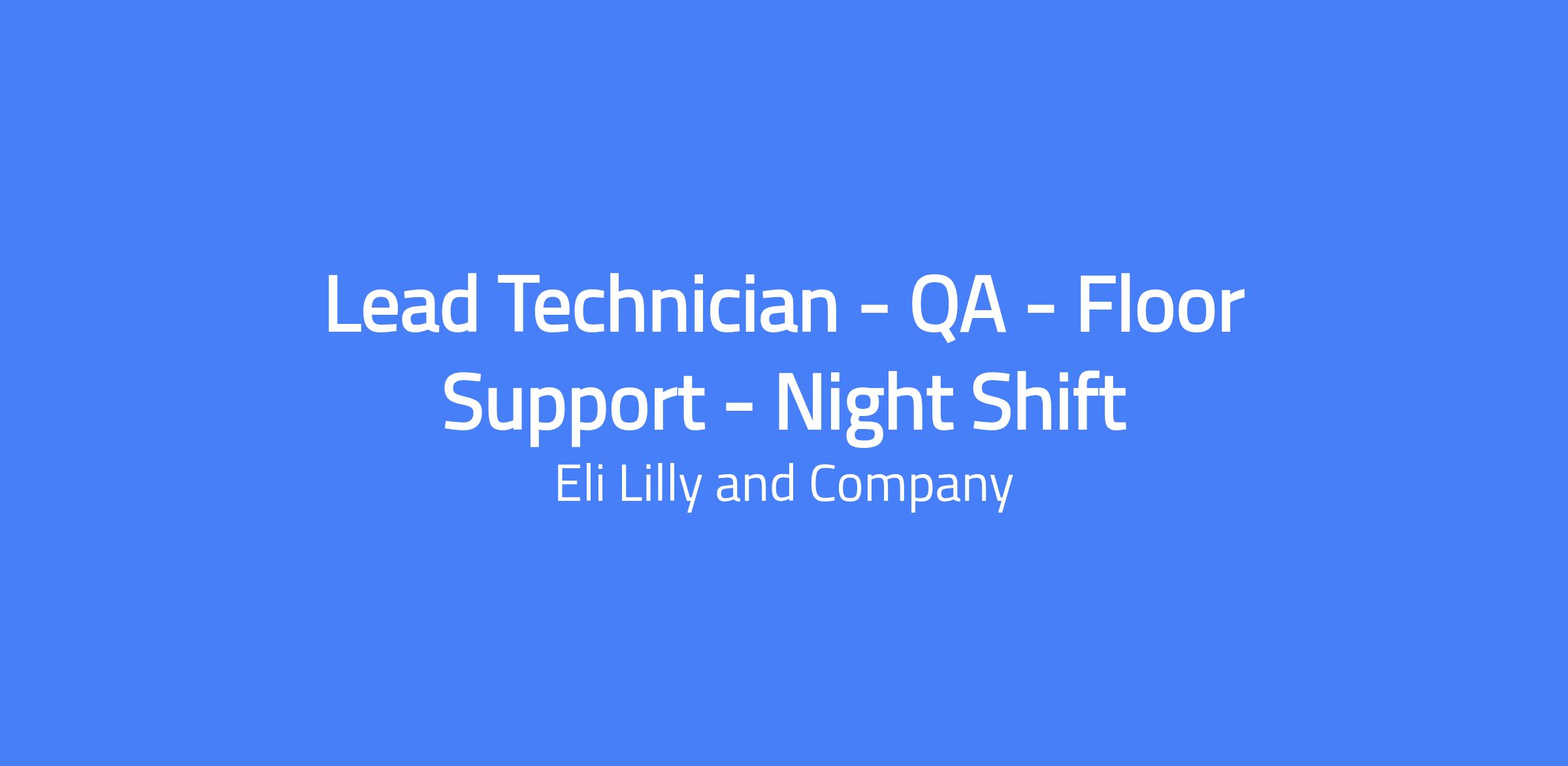 Lead QA Floor Support Technician (Night Shift) provides daily QA oversight to GMP operations at Indianapolis Parenteral Manufacturing, supporting multiple production functions from operations to maintenance to ensure safe, efficacious drug products and site goals with quality guidance. Location: Indianapolis, IN.