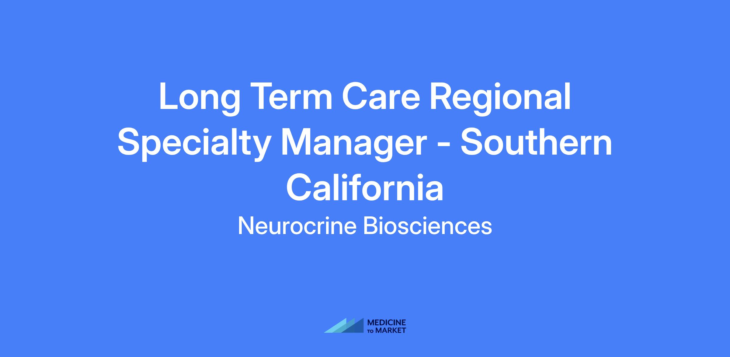 Long Term Care Regional Specialty Manager - Southern California. Leads a sales team promoting treatments for neurological, endocrine and psychiatric disorders, recruiting and developing a high-performing team to exceed regional sales goals while managing key projects and collaborating with cross-functional teams. Provides strategic direction, field coaching, and specialty pharmacy access strategies, with strong relationship-building and communication skills to guide the team toward effective solutions.