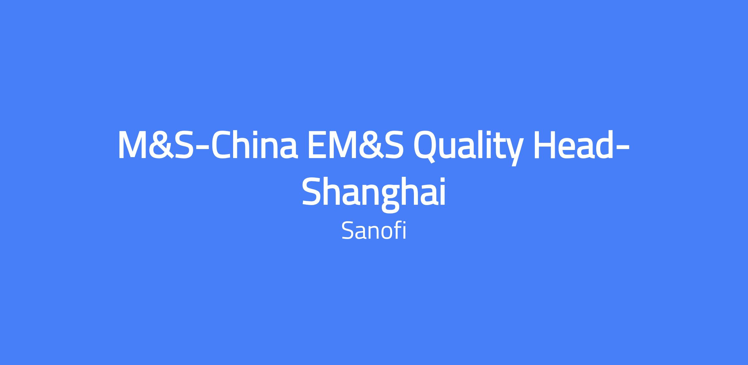 Role: M&S-China EM&S Quality Head in Shanghai. Lead the quality management and regulatory compliance framework for EM&S China products, ensuring alignment with NMPA GMP requirements and biologics manufacturing standards. Build and manage a biologics-focused quality team and oversee technology transfer, CMO relationships, and product dossiers to support regulatory registrations and ongoing compliance.