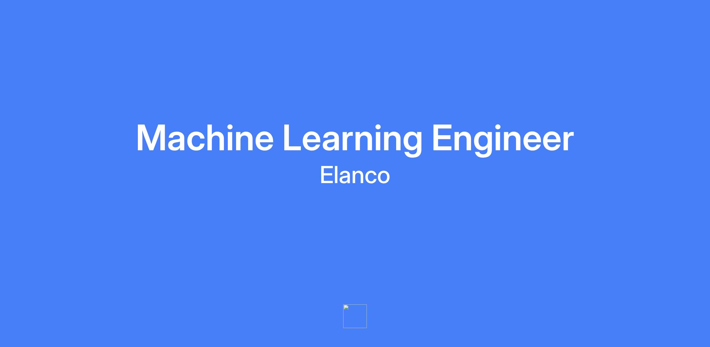 Machine Learning Engineer at Elanco, focusing on end-to-end lifecycle of custom and third-party ML models to translate complex business problems into scalable, production-ready AI solutions. Role blends software engineering discipline with deep ML expertise to design, build, and deploy models delivering real-world value. Four strategic priorities: Pipeline Acceleration, Manufacturing Excellence, Sales Effectiveness, and Productivity.