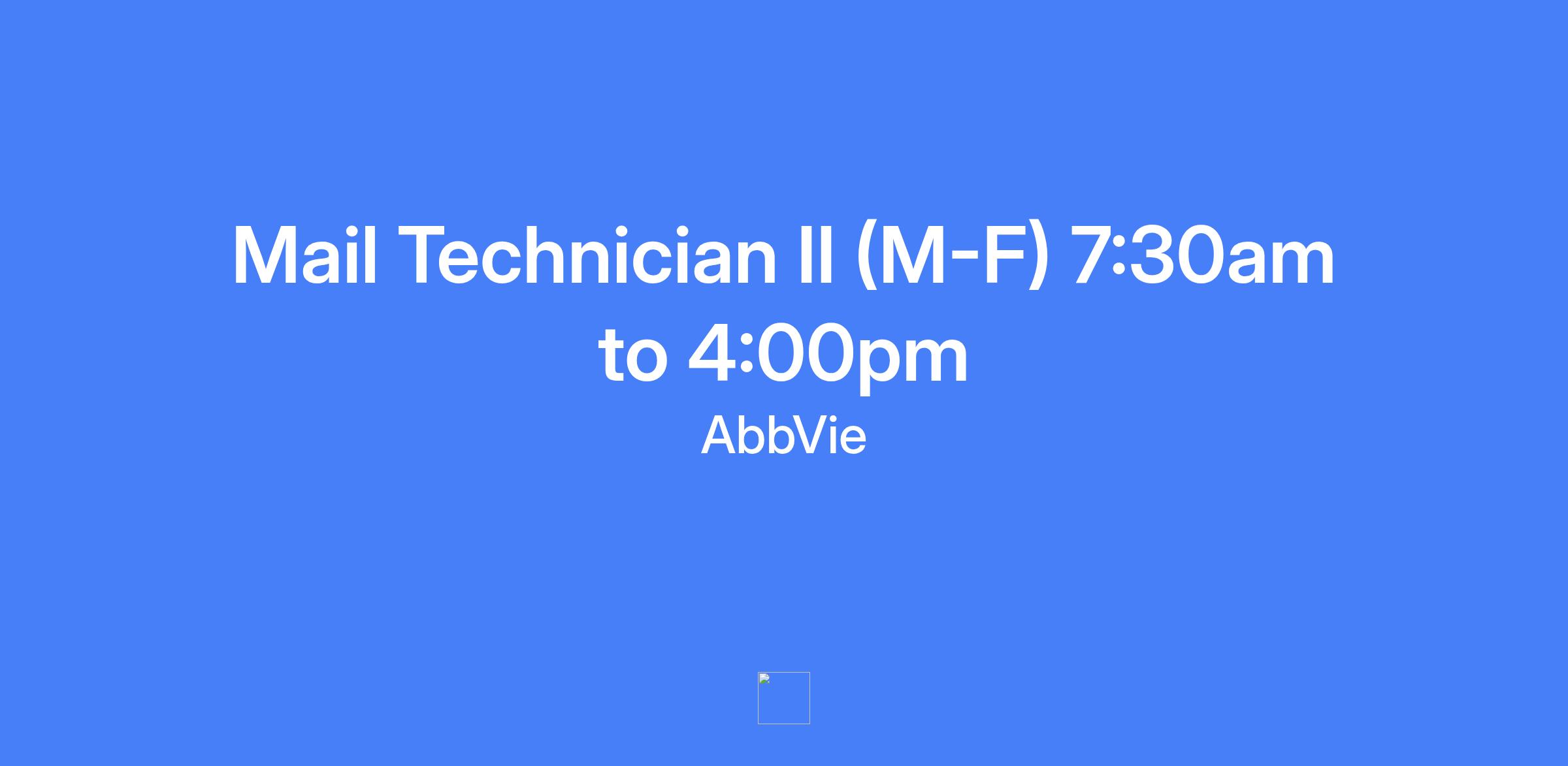 Mail Technician II (M-F) 7:30am to 4:00pm. Responsible for receiving, sorting, processing, and palletizing packages; delivering mail and packages on assigned routes; obtaining signatures for recordable mail; and supporting internal customers with special requests.