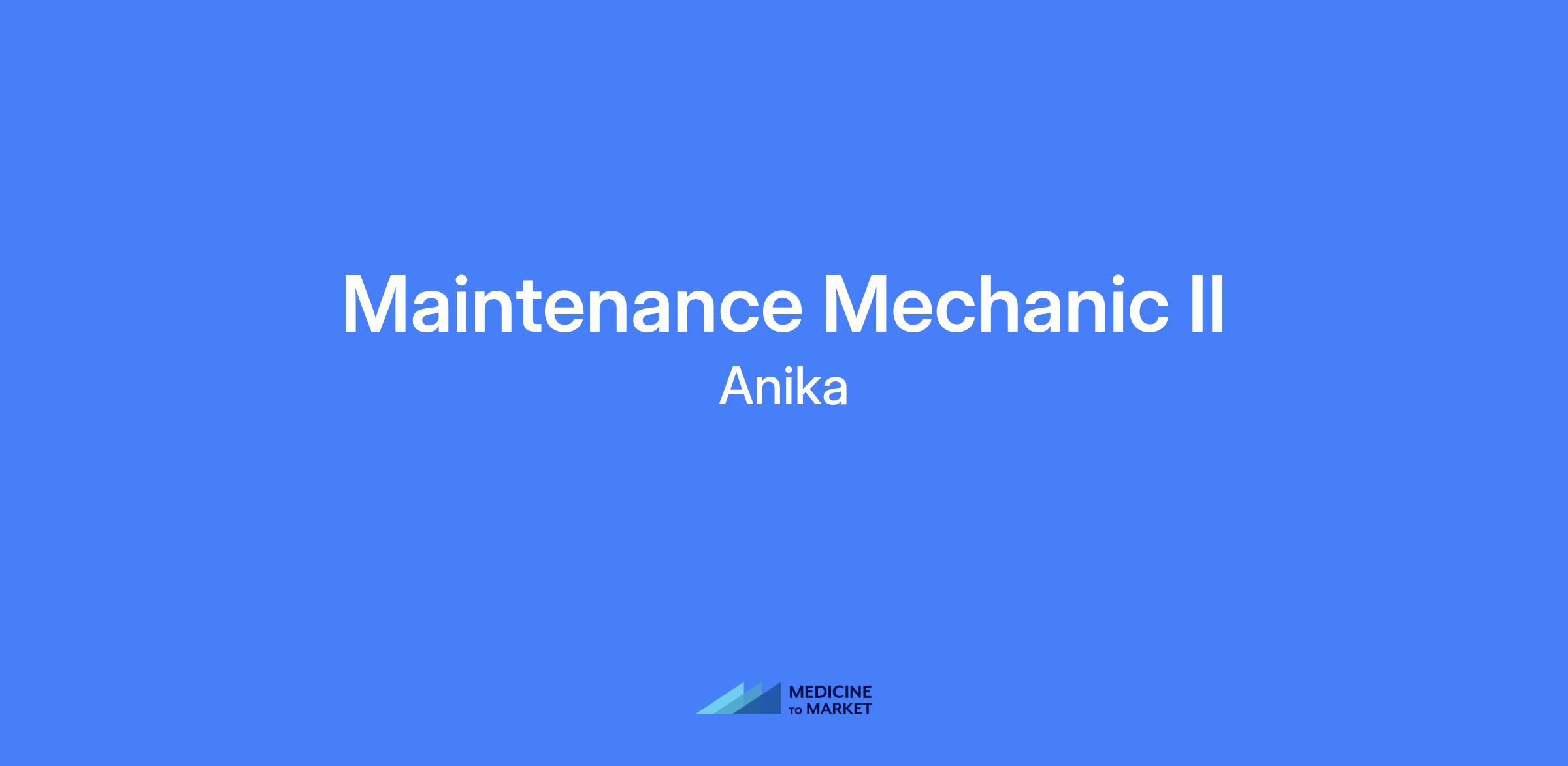 Maintenance Mechanic II. Responsible for performing and documenting preventative and corrective maintenance on a variety of process equipment, packaging equipment and utility systems within a cGMP manufacturing facility.