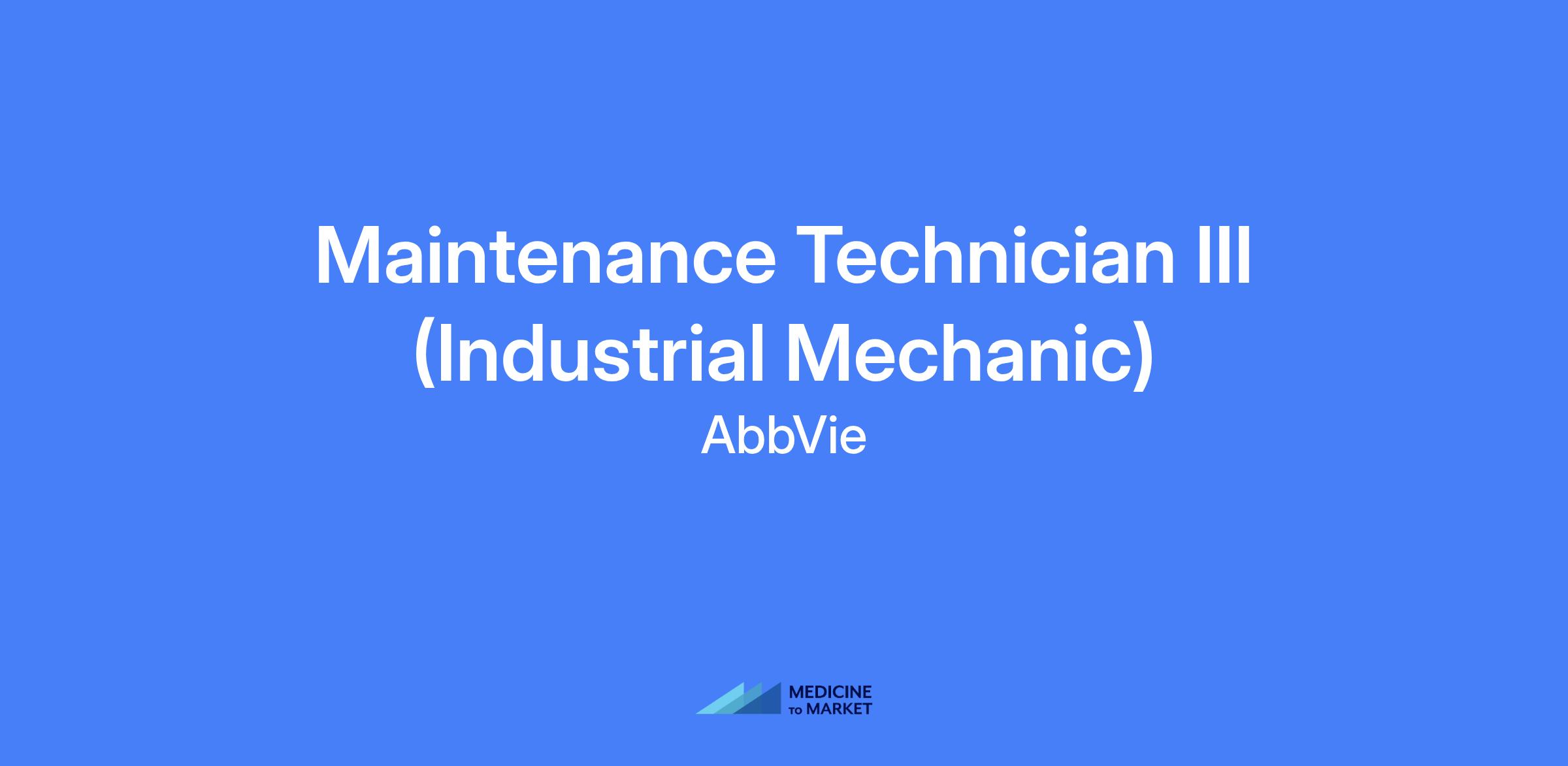 Maintenance Technician III (Industrial Mechanic) Independently perform senior-level technical support within the maintenance department and train lower-level Technicians on more advanced tasks.