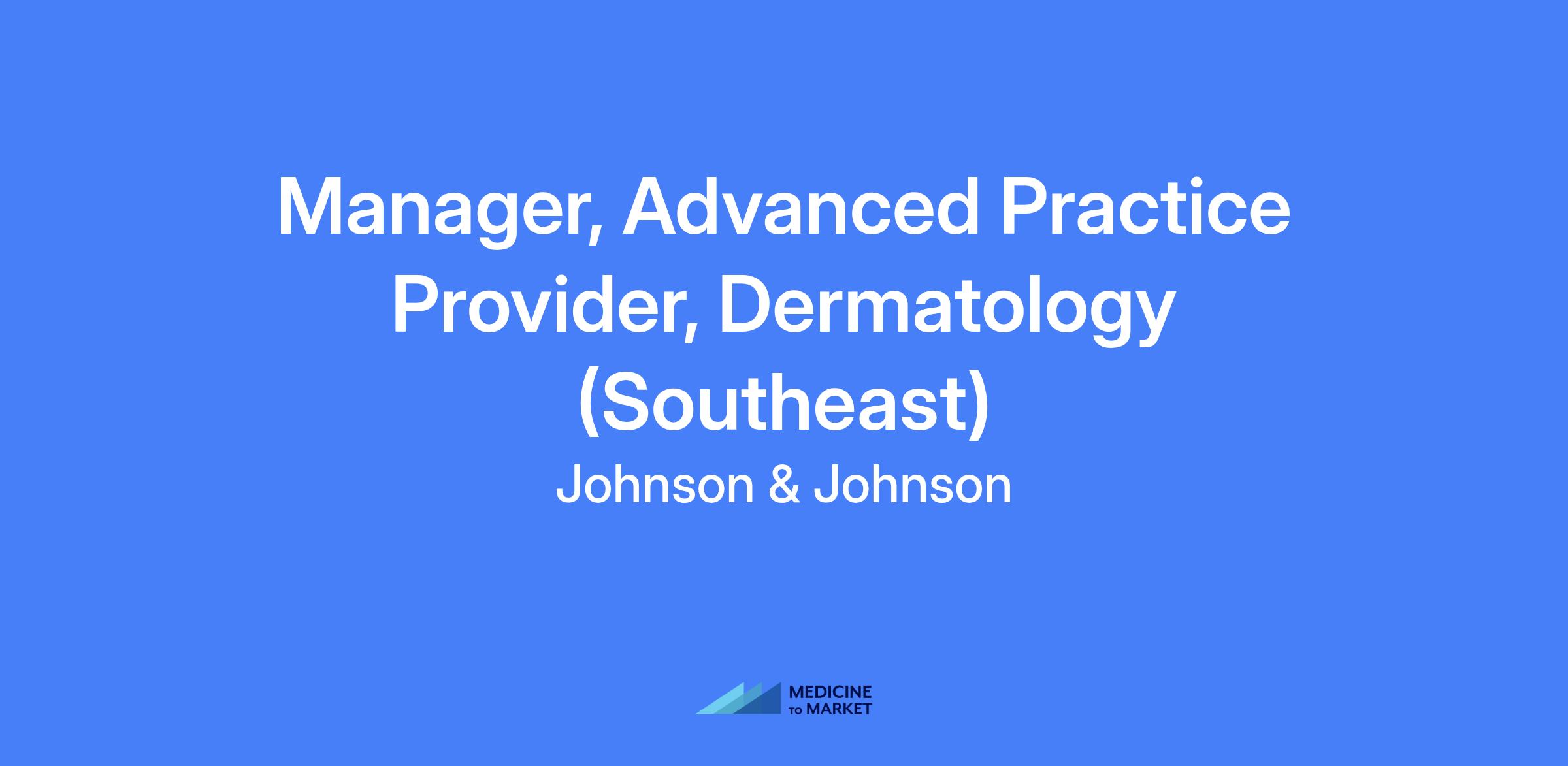 Johnson & Johnson Innovative Medicine is searching for the best talent for a Manager, Advanced Practice Provider, Dermatology to cover Miami, Orlando and Jacksonville, FL, Charlotte, NC and Atlanta, GA territories. This position will be field based.