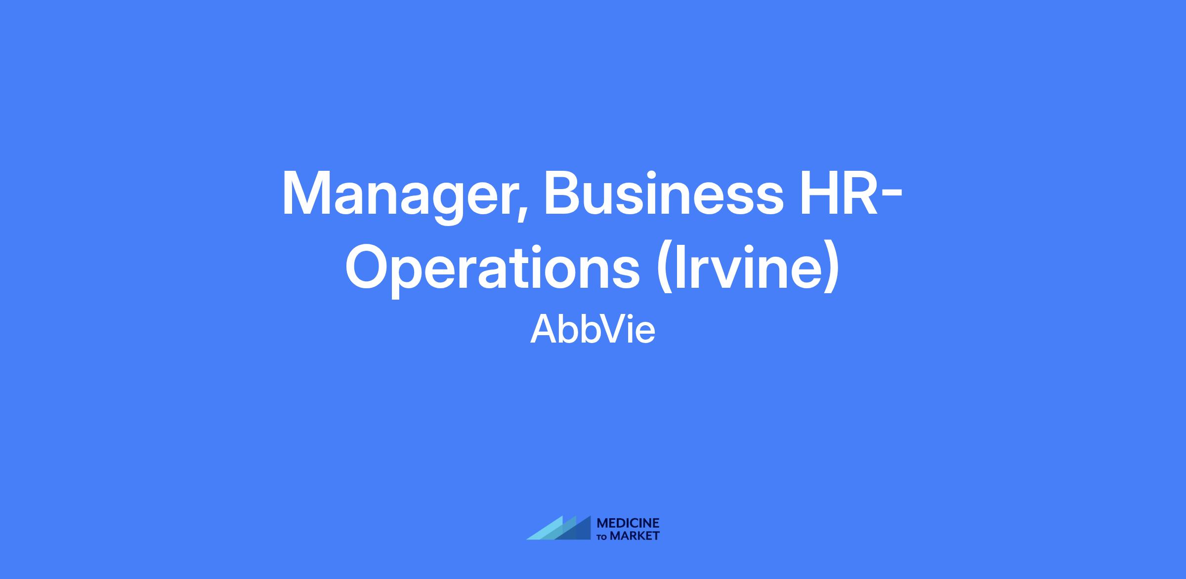 Manager, Business HR- Operations (Irvine) at AbbVie. Hybrid schedule with a minimum of 3 days/week onsite at the Irvine, CA manufacturing site. Strategic HR partner supporting site leadership with talent strategies to drive business objectives.