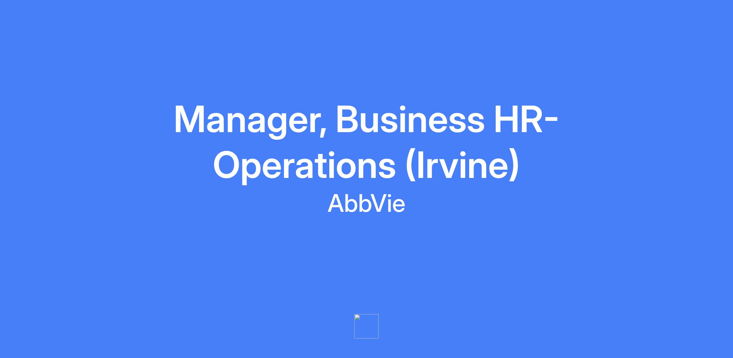Manager, Business HR- Operations (Irvine) at AbbVie. Hybrid schedule with a minimum of 3 days/week onsite at the Irvine, CA manufacturing site. Strategic HR partner supporting site leadership with talent strategies to drive business objectives.