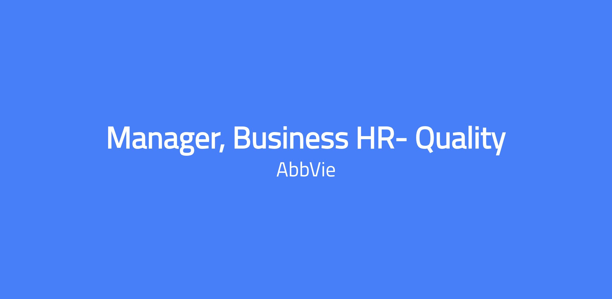 The HR Manager is a strategic partner to the AbbVie Quality Operations organization, shaping culture and delivering the talent needed to support business strategies. The role leverages best-in-class HR practices to create and deliver programs that position AbbVie as an employer of choice and empower employees at all levels. This position serves as a strategic HR partner to multiple VPs in the AbbVie Quality organization to develop and implement people strategies aligned with both short-term and long-term business objectives.