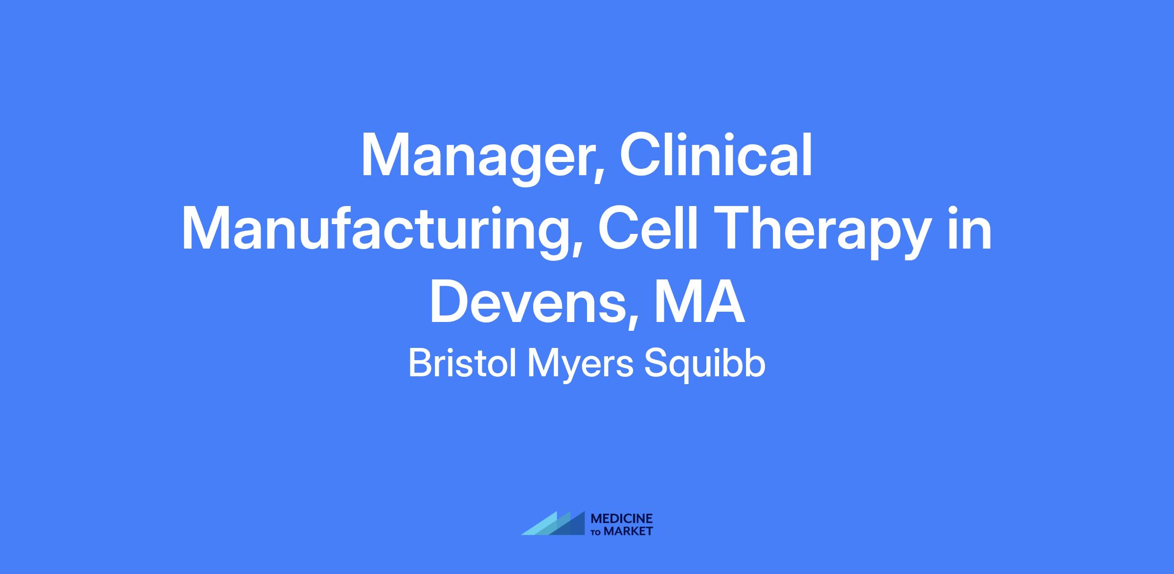Manager, Clinical Manufacturing, Cell Therapy