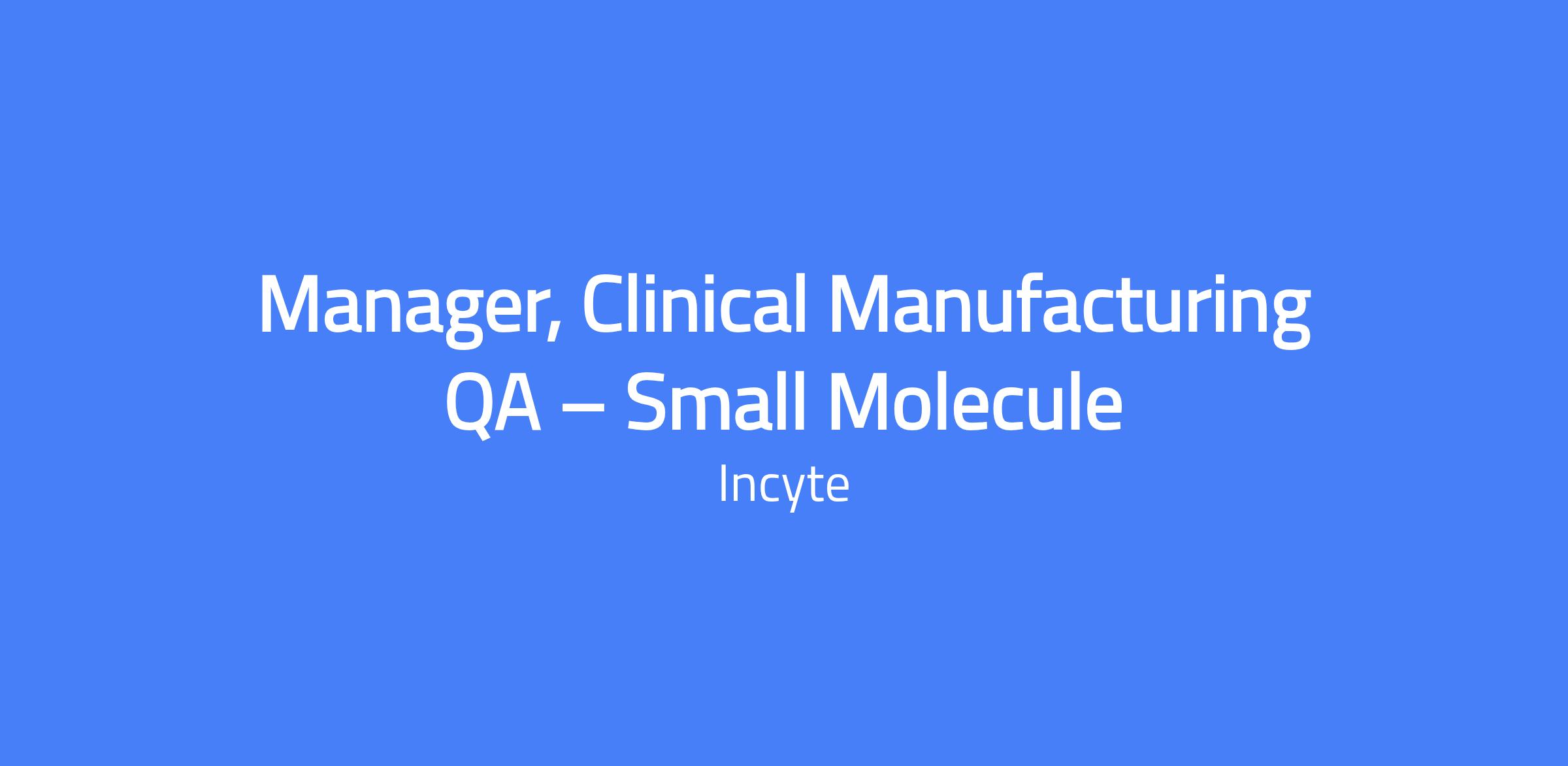 - Act as QA lead and single point of contact for managing small molecule products.