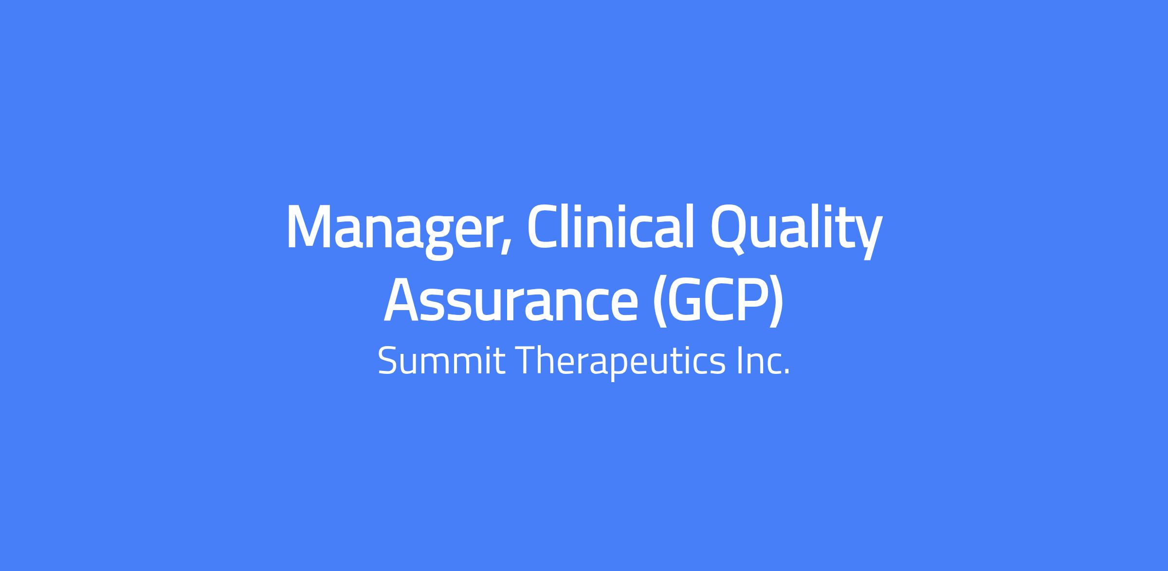 Partnering and collaborating with key stakeholders (R&D teams) to ensure that appropriate Quality support is provided to Summit Clinical and pre-clinical programs