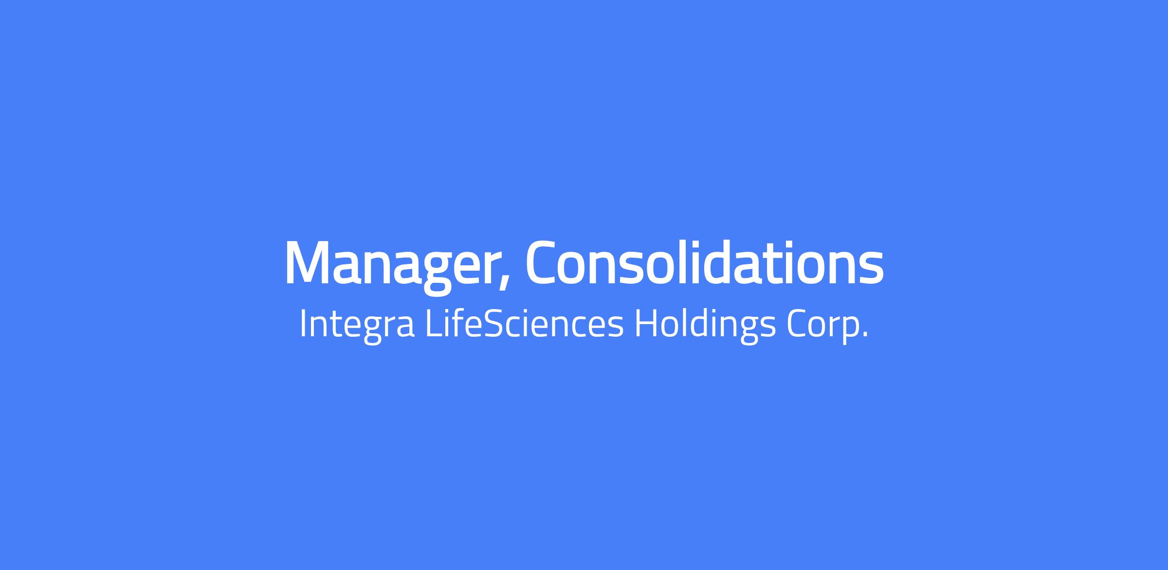 Changing lives. Building Careers. Joining us is a chance to do important work that creates change and shapes the future of healthcare. Thinking differently is what we do best. To us, change equals opportunity. Every day, our colleagues are challenging whatâs possible and making headway to innovate new treatment pathways to advance patient outcomes and set new standards of care. SUMMARY DESCRIPTION The Consolidations Manager will be responsible for all aspects of the consolidations process, inclusive of leading a team of senior accountants who prepare monthly and quarterly financial reports, as well as audited financial statements. SUPERVISION RECEIVED Under direct supervision of the Controller of Financial Reporting. SUPERVISION EXERCISED Supervises accounting specialists and senior accountants ESSENTIAL DUTIES AND RESPONSIBILITIES To perform this job successfully, an individual must be able to perform each essential duty satisfactorily. Primary responsibilities are to: Lead the monthly, quarterly, and annual financial consolidations process Prepare consolidated financial statements in accordance with US GAAP (Balance Sheet, Income Statement, Statement of Cash Flows, Statement of Stockholderâs Equity etc.) Review and analyze consolidated results, providing variance analysis and executive level reporting Provide support for 10Q and 10K SEC Filings (financial statements, footnotes, financial summaries, graphs, MD&A, Tie out review etc.) Manage a team of 2-4 accountants. Ensure that each accountant is provided the required training and support to effectively perform their assigned tasks Review and approve general ledger activity, including journal entries and account reconciliations for designated entities Ensure that procedures and policies are in place to effectively reconcile all accounts on a timely basis and to comply with all stated requirements of SOX 404 Drive process improvements and automation within the consolidation and close cycle Lead the global transfer pricing process; coordinate across finance and tax teams to ensure alignment Coordinate with internal and external auditors in planning and reviewing interim year-end audit requirements Communicate with other cross functional teams including Tax, FP&A, Treasury and Accounting. Collaborate with the tax department on any legal entity restructuring activities (transfers, liquidations, and mergers) Other tasks and special projects, as assigned DESIRED MINIMUM QUALIFICATIONS The requirements listed below are representative of the knowledge, skill and/or ability required for his position. Education: Bachelorâs Degree in Accounting required. Certifications: None required, CPA a plus. Experience: 5+ years of corporate and/or public accounting experience, with at least 2 of those years managing a team and reviewing their work. Strong computer skills; Experience with Oracle, OneStream, and/or Workiva systems a plus. Highly organized and detail-oriented with a strong focus on accuracy and completeness Demonstrated analytical skills with the ability to interpret complex financial data Strong problem-solving skills with ability to identify root causes and implement effective solutions Effective communicator, both written and verbal Proactive and process-improvement mindset This is a hybrid full-time position based at our Princeton, NJ headquarters, requiring on-site presence Tuesday through Thursday. Salary Pay Range: $109,250.00 - $149,500.00 USD Salary Our salary ranges are determined by role, level, and location. Individual pay is determined by several factors including job-related skills, experience, and relevant education or training. In addition to base pay, employees may be eligible for bonus, commission, equity or other variable compensation. Your recruiter can share more about the specific salary range for your preferred location during the hiring process. Additional Description for Pay Transparency: Subject to the terms of their respective plans, employees and/or eligible dependents are eligible to participate in the following Company sponsored employee benefit programs: medical, dental, vision, life insurance, short- and long-term disability, business accident insurance, and group legal insurance, and savings plan (401(k)). Subject to the terms of their respective policies and date of hire, Employees are eligible for the following https://jobs.integralife.com/total-rewards/ Integra LifeSciences is an equal opportunity employer, and is committed to providing equal employment opportunities to all qualified applicants and employees regardless of race, marital status, color, religion, sex, age, national origin, sexual orientation, physical or mental disability, or protected veteran status. This site is governed solely by applicable U.S. laws and governmental regulations. If you'd like more information on your rights under the law, please see the following notices: EEO Is the Law | EOE including Disability/Protected Veterans Integra LifeSciences is committed to provide qualified applicants and employees who are disabled veterans or individuals with disabilities with needed reasonable accommodations in accordance with the ADA. If you have difficulty using our online system due to a disability and need an accommodation, please email us at careers@integralife.com. Unsolicited Agency Submission Integra LifeSciences does not accept unsolicited assistance from search firms for employment opportunities. All CVs/resumes submitted by search firms to any employee at our company without a valid written search agreement in place for this position will be deemed the sole property of our company. No fee will be paid in the event a candidate is hired by our company as a result of an agency referral where no pre-existing agreement is in place. A formal written agreement is required before engaging any agency, and it must be executed and authorized by the Vice President, Talent Acquisition. Where agency agreements are in place, introductions (the 