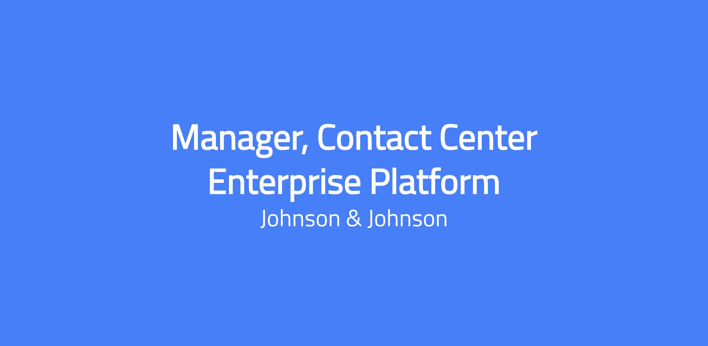 Johnson & Johnson is recruiting for a Manager, Contact Center Enterprise Platform that will report directly to the Senior Manager, Johnson and Johnson Technology Services (JJT) to be located in Raritan, New Jersey. This pivotal role involves shaping the Contact Center service offering, driving innovation, leading delivery and ensuring excellence in service delivery to improve customer satisfaction, operational efficiency. Excellent opportunity to shape enterprise-scale solutions with real-world impact. This role is available across multiple countries and may be posted under different requisition numbers to comply with local requirements. Location options include Raritan, NJ; New Brunswick, NJ; and Beerse, Belgium.