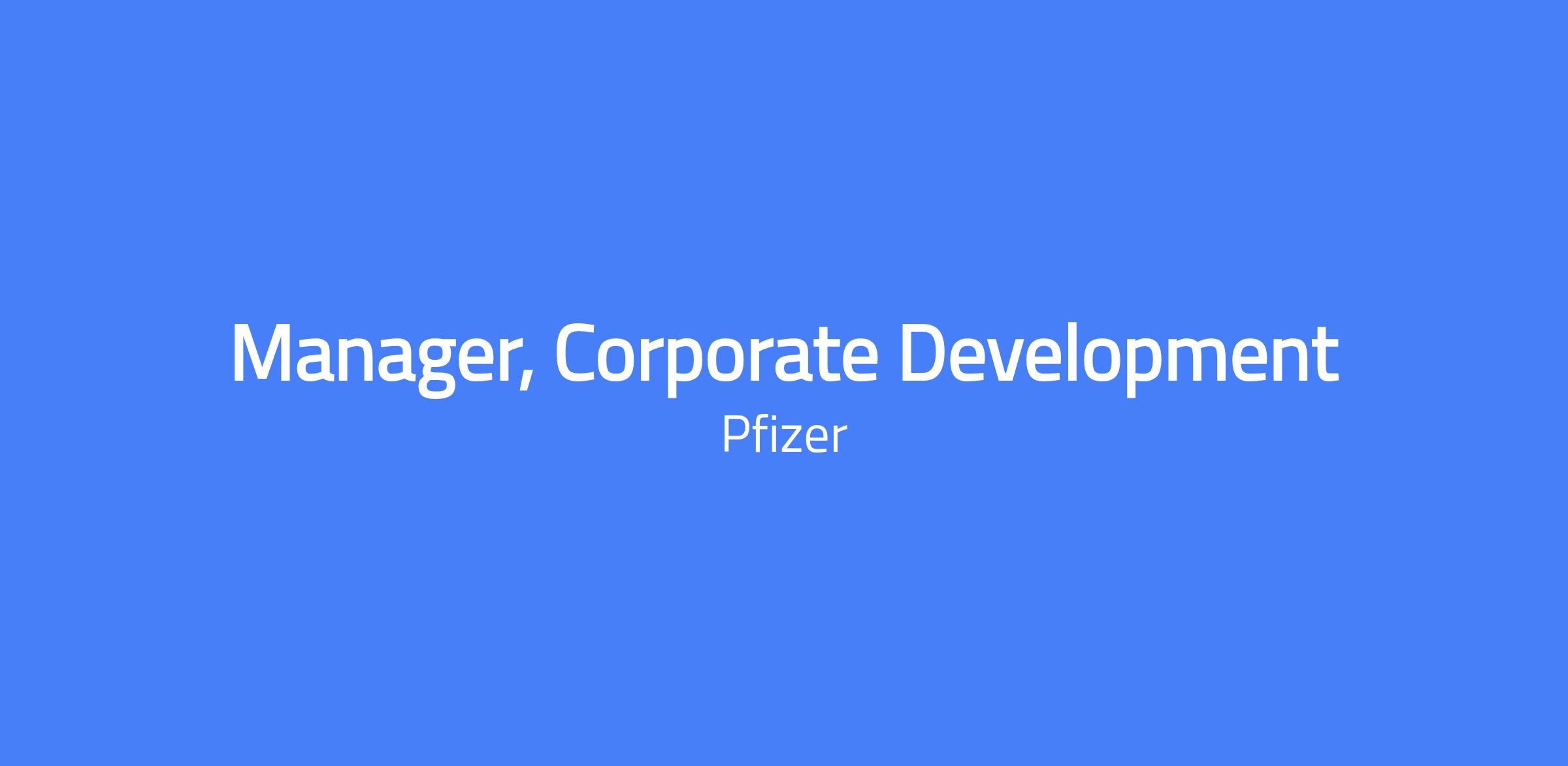 The Manager, Corporate Development will be responsible for helping to identify, evaluate and execute strategic transactions for Pfizer, including public company mergers and acquisitions, large private acquisitions and significant corporate divestitures. Core activities will include developing and managing financial models and metrics for corporate development projects, leading/supporting the analytics and processes for identifying new opportunities, creating presentations for senior management summarizing opportunities, and managing the internal and external core financial data sources for the Corporate Development team.
