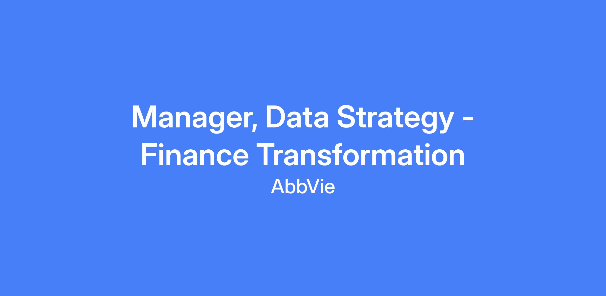 The Manager, Data Strategy will leverage advanced technical expertise and project management skills to drive enterprise-wide Finance Transformation initiatives. Responsibilities may include supporting complex programs such as Finance Data Governance, SAP Enablement, and financial systems strategy, with a focus on translating finance data into actionable insights using best in class technologies.
