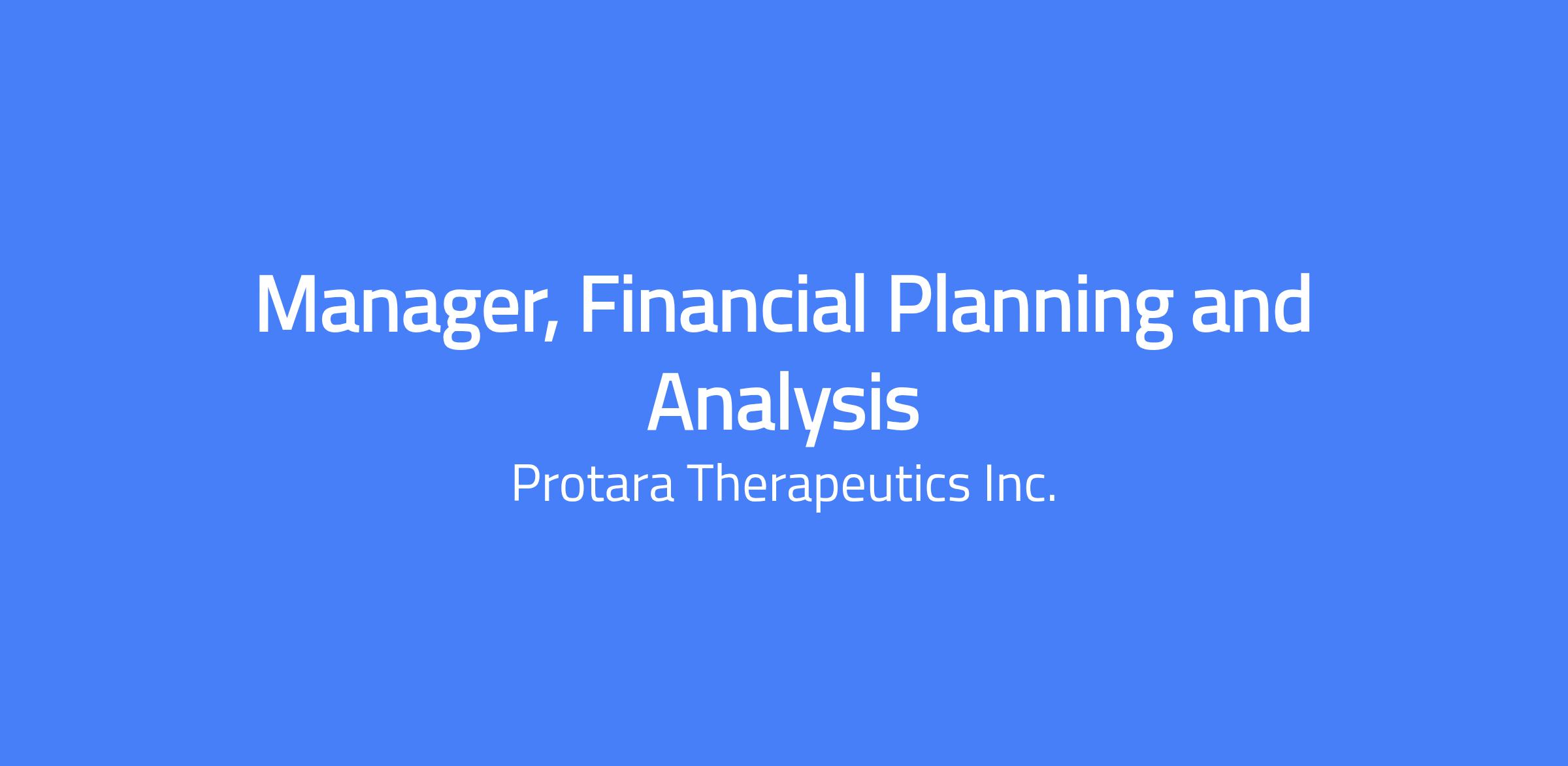 The Manager, Financial Planning and Analysis, provides financial planning and analytical support to the Associate Director, Financial Planning and Analysis and to the broader Finance team. This individual assists in managing the FP&A function and supports the financial aspects of Protara by providing forecasting, business modeling, valuation, financial analysis, and other analytic techniques as needed. The manager will help manage the company’s forecast and cash runway model in Workday Adaptive Planning and share key insights with management. This individual participates in the preparation of Board presentations and supporting materials.