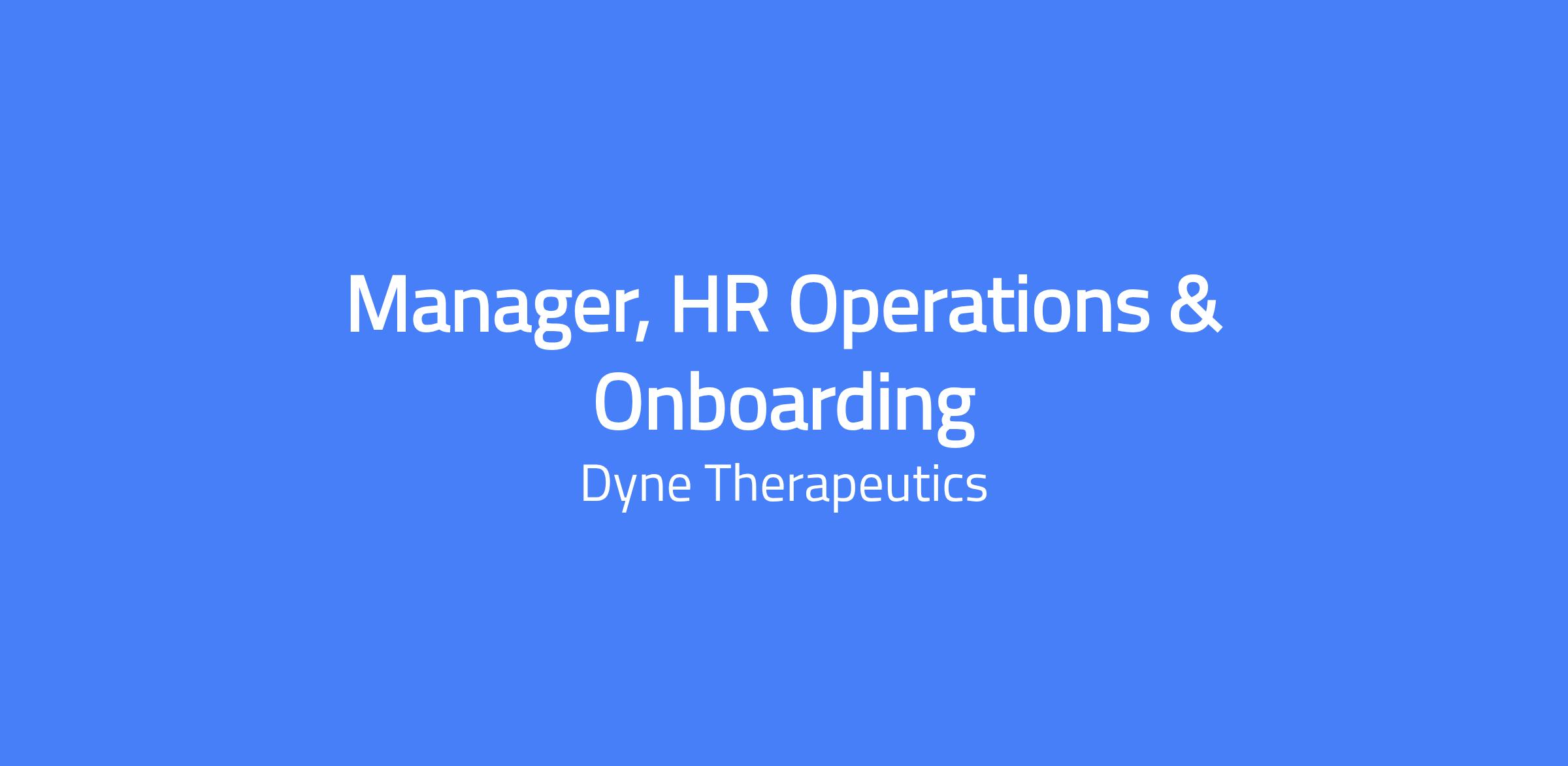 The Manager, HR Operations & Onboarding partners with the HR team to continuously enhance Dyne’s core HR operational functions, including onboarding, HRIS administration, benefits coordination, and process optimization. This role serves as a point of contact for employee HR-related questions and provides timely, accurate guidance to employees and managers on policies, processes, and systems. The Manager leads and oversees the onboarding experience, ensuring new hires have a seamless and engaging transition into Dyne. Additionally, this role maintains data integrity across Dyne’s HR systems (ADP Workforce Now and Greenhouse ATS) and drives automation to enable scalability, efficiency, and a best-in-class employee experience. This role is based in Waltham, MA.