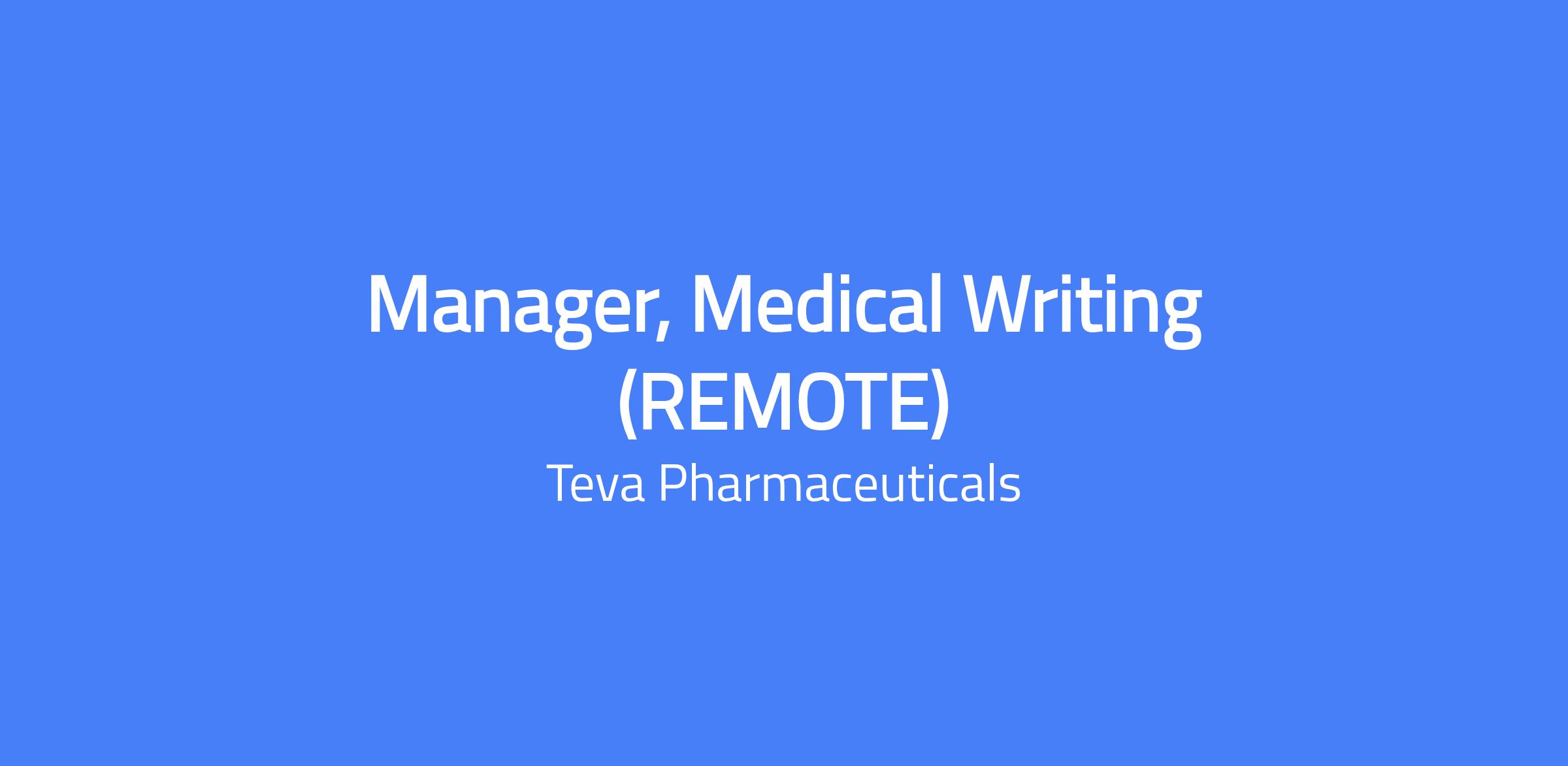 Manager, Medical Writing (REMOTE)