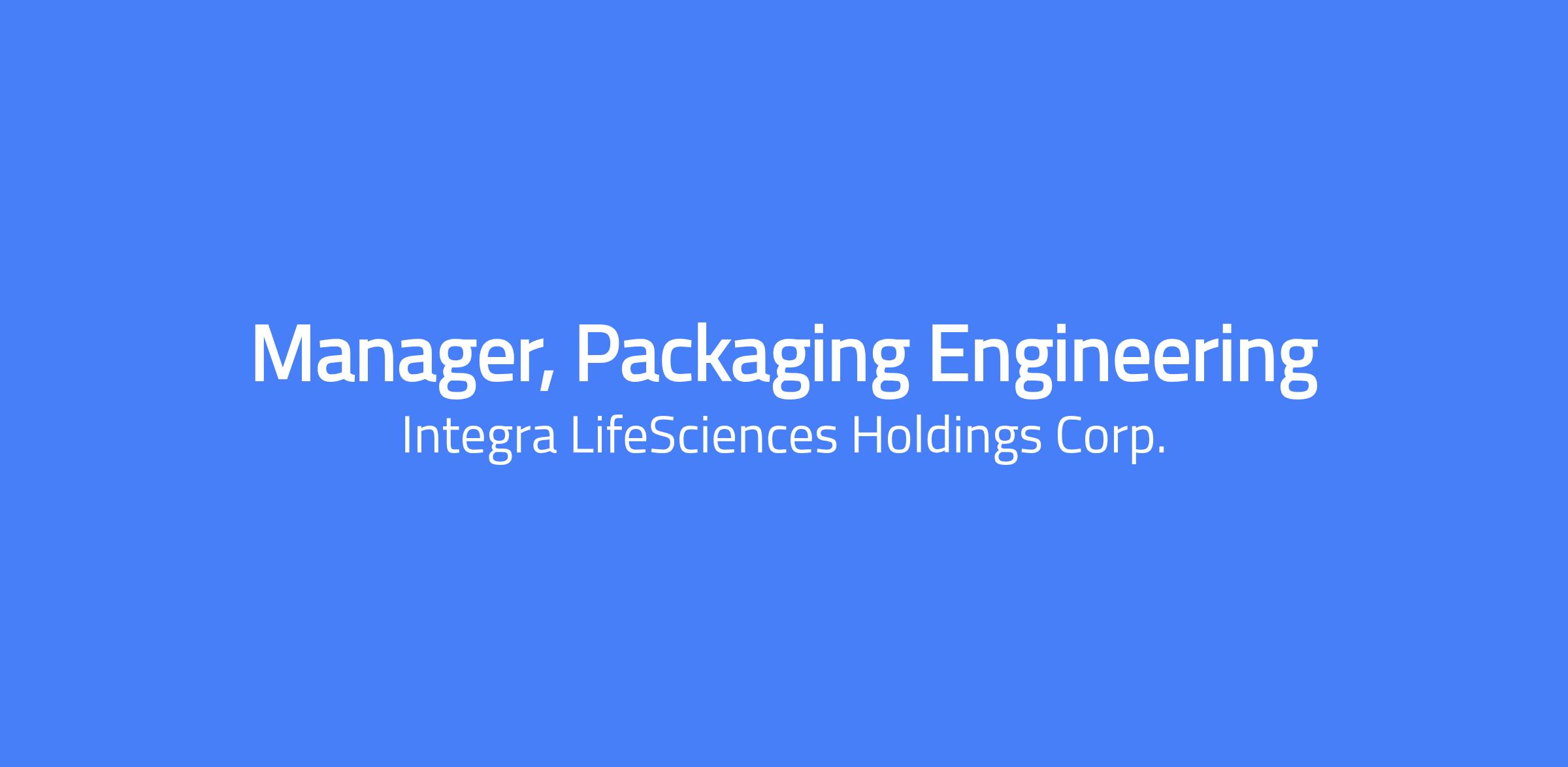 Changing lives. Building Careers. Joining us is a chance to do important work that creates change and shapes the future of healthcare. Thinking differently is what we do best. To us, change equals opportunity. Every day, our colleagues are challenging whatâs possible and making headway to innovate new treatment pathways to advance patient outcomes and set new standards of care. The Packaging Engineer Manager is responsible for managing all aspects of the design, development, and validation of packages and packaging systems for medical devices at Tissue Technologies division of Integra, in compliance with applicable FDA and ISO requirements. This individual is responsible for providing departmental technical expertise for package development while collaborating with regulatory, marketing, market research, supply chain, process excellence and other affiliated departments and organizations to identify and address packaging needs. These duties include managing the strategy for the development of sterile barrier systems and secondary packaging, creating, and maintaining detailed specifications, creating, and executing validation/qualification protocols, and responsibility for packaging equipment selection and development, material selection, supplier selection, and labeling. SUPERVISION RECEIVED Manager provides regular oversight on task/ activities related to project deliverables and timeline. This position will be responsible for the career development of Packaging Engineers, technician and interns. SUPERVISION EXERCISED May oversee and provide task/ activity guidance to department engineers, interns, and lab technician. ESSENTIAL DUTIES AND RESPONSIBILITIES Manage the design, development, and qualification of packages and packaging systems for sterile and non-sterile medical devices at Integra Lifesciences. Lead cross functional teals while executing projects start to finish Independently determine and develop approach to solutions and present results to peers and leadership. Articulate and drive packaging strategy and develop the associated Standard Operating Procedures (SOPs) and best practices to ensure success and align to current regulations and business strategies Establish timelines, budget estimates, and resource requirements for package development, sustaining and continuous improvement projects and drive the projects to successful completion Mentor the Tissue Technologies R&D Packaging Engineering team members and provide project direction, prioritization, and technical oversight to ensure successful implementation of packaging strategy in support of product leadership goals. Support the conceptualization, initiation, development and implementation of new packages and processes including design generation, prototyping, consumer acceptance testing, engineering specifications, verification and validation, and technology transfer Identify and investigate industry best practices and implementation improvements as appropriate Demonstrate technical expertise on packaging, materials, and processes along with the ability to communicate that knowledge to internal and external partners Prepare and maintaining the departmental policies, procedures, and manuals Investigate design changes and failures, product complaints, and non-conformances, report findings and recommendations in company systems for corrective and preventive action Prepare Failure Mode Effects Analysis (FMEA) and risk assessments for products and processes Process validations of new and modified designs and processes Collaborate with Quality to ensure compliance to appropriate ISO/FDA regulations for the design, testing, documentation, and manufacturing of the companyâs products Interface with Manufacturing, Quality, Regulatory, Research & Development, Sales, Marketing, and outside vendors to accomplish assigned tasks Perform other duties as assigned Additional Responsibilities Demonstrate a commitment to understanding packaging and labeling related global medical device manufacturing, ISO 13485, and regulations through active participation in company training as well as through self-education by reading related articles and attending seminars Work effectively on computers using Microsoft Office and Minitab statistical software to collect data, create histograms and graphs, and write protocols and reports DESIRED MINIMUM QUALIFICATIONS Minimum of a bachelorâs degree in Packaging Engineering or other engineering disciplines or possess the equivalent combination of education and experience. A masterâs degree in Packaging Engineering or other engineering disciplines is preferred. Minimum of 10 years of experience developing and validating packaging systems for medical devices. Expert knowledge of the U.S. and International standards governing the design, development, testing, and manufacture of medical devices, particularly ISO 11607, ISO 13485 well as ASTM and ISTA test methods and practices. Expert knowledge of U.S. FDA, cGMP, and ISO requirements for the design, validation, manufacturing processes, secondary operations, and assembly of packaging systems Manage direct reports through professional development Ability to drive projects with tight timelines and drive them to successful completion. Excellent verbal and written communication skills; ability to lead meetings and effectively present to a group Demonstrate effective time management and verbal and written communication. Critical thinking and problem solving to develop solutions Knowledge of gamma, ETO, and e-beam sterilization methods Proficient PC skills (MS Word, MS Excel, MS Project, MS Visio). TOOLS AND EQUIPMENT USED Office equipment: Computer (desktop or laptop), keyboard, mouse, desk, chair Measurement tools: (ruler, calipers) Cutting tools: scissors, precision knife, box cutter Packaging equipment: Vibration table, drop tester, compression tester, leak detector, tensile tester, PHYSICAL REQUIREMENTS Ability to sit for extended periods of time Ability to w