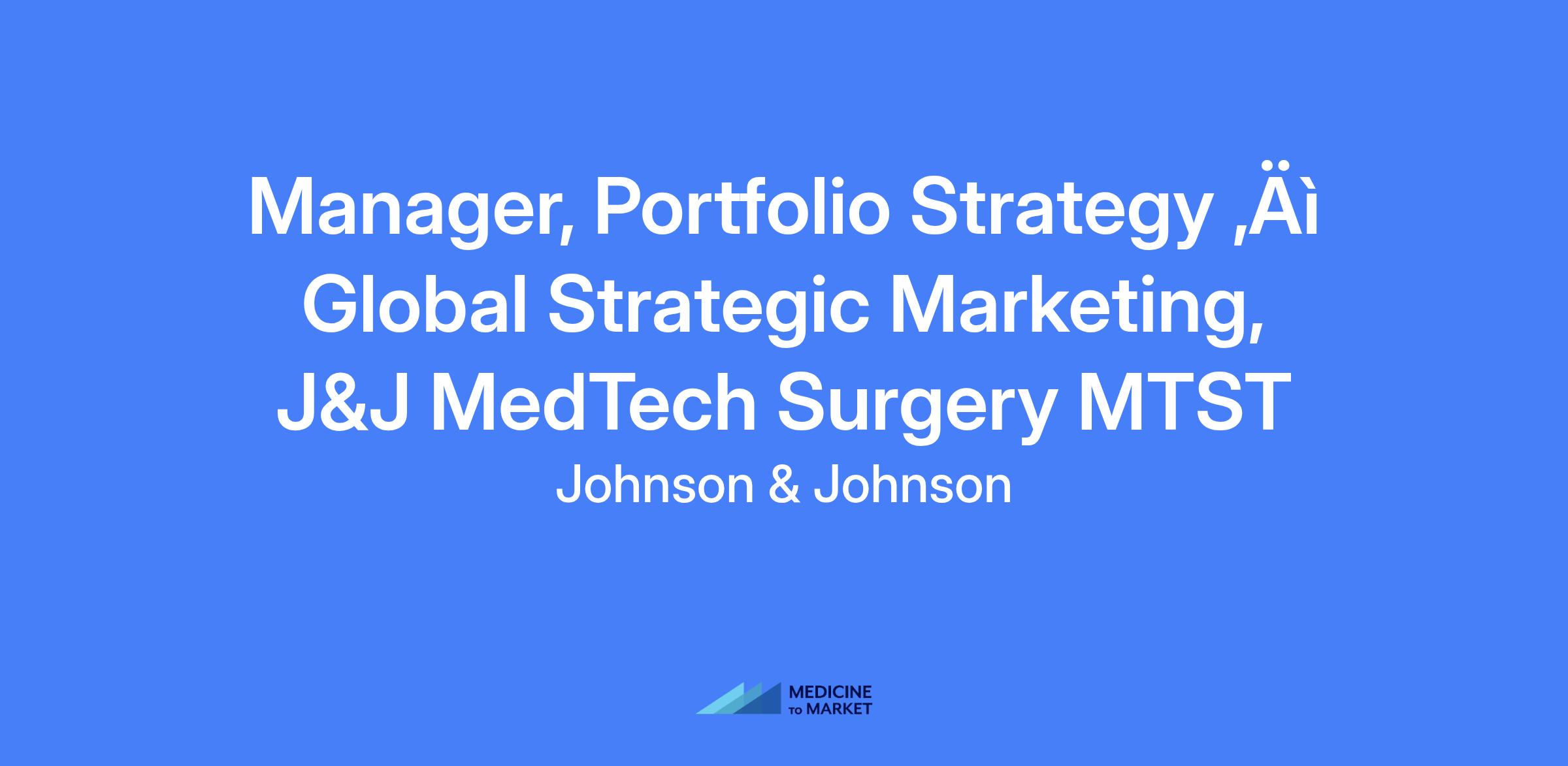 Manager, Portfolio Strategy – Global Strategic Marketing, J&J MedTech Surgery MTST at Johnson & Johnson MedTech Surgery. Limited-duration, full-time role from December 1, 2025 through December 31, 2026, located in Raritan, NJ (alternative locations considered); remote work options may be considered on a case-by-case basis.