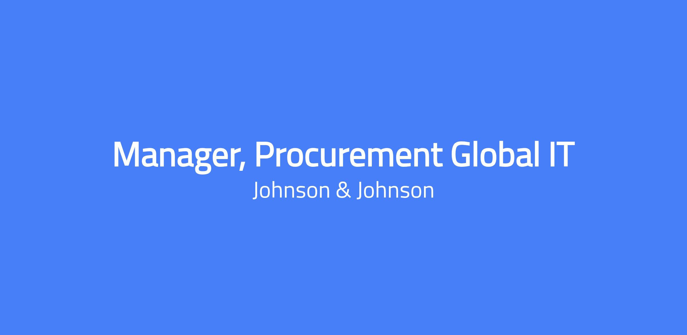 Johnson & Johnson is seeking a Manager, Procurement Global IT. The role will build robust and relevant category strategies aligned to business needs and market dynamics, and serve as global Supplier Relationship Manager for select strategic suppliers to maximize value and innovation. The position collaborates with the business, J&J technology, key suppliers, Global Services, and the broader Procurement function. The role can be based in Titusville, NJ, Raritan, NJ, New Brunswick, NJ, or Tampa, FL.