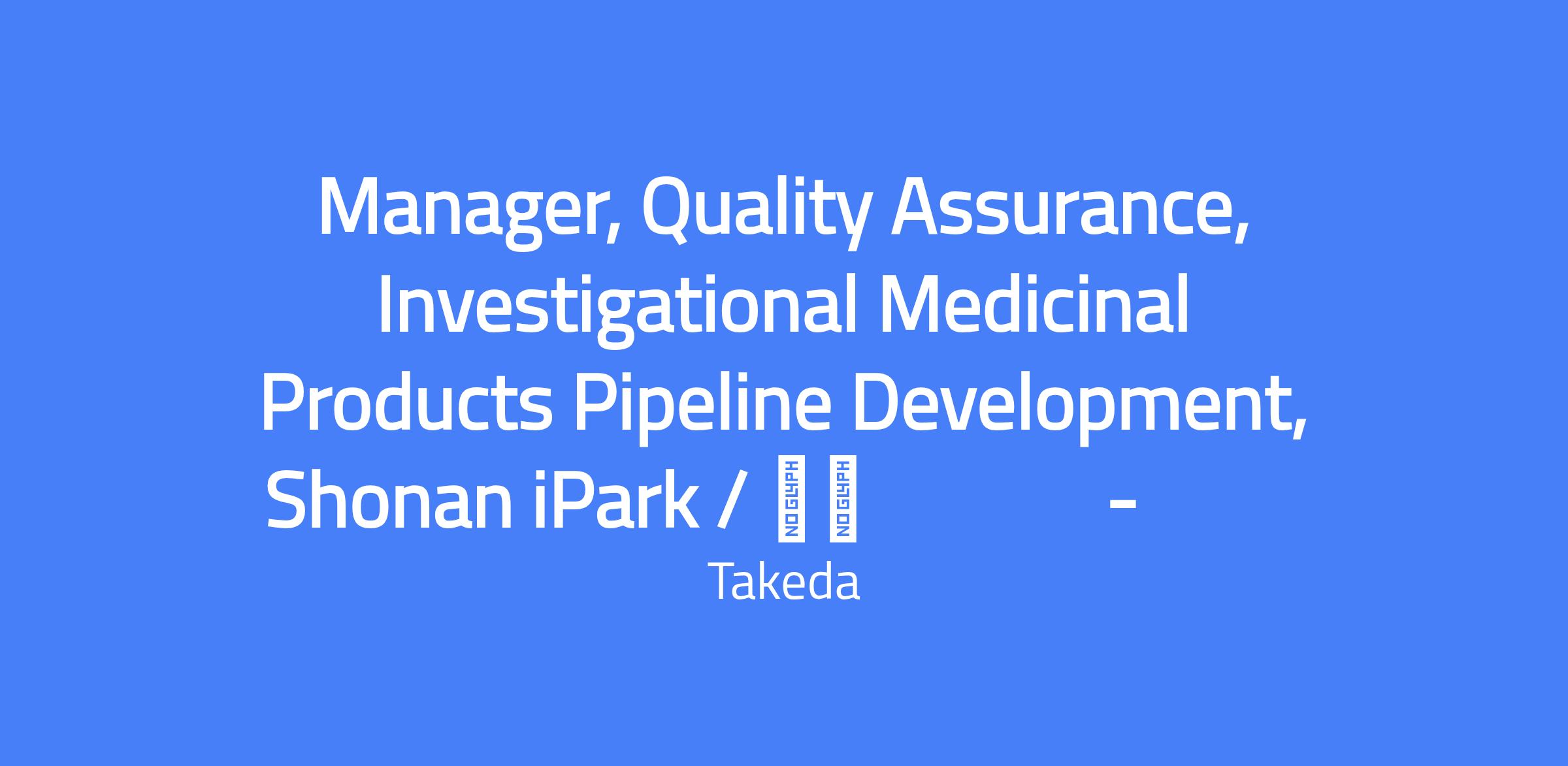 Manager, Quality Assurance, Investigational Medicinal Products Pipeline Development, located in Kanagawa (Fujisawa). Responsible for monitoring GMP compliance of development programs, providing QA input on development strategies, and approving manufacturing and testing methods for investigational medicines. Works with global teams to ensure GMP-aligned quality systems across countries and supports continuous quality improvement within the clinical drug development pipeline.