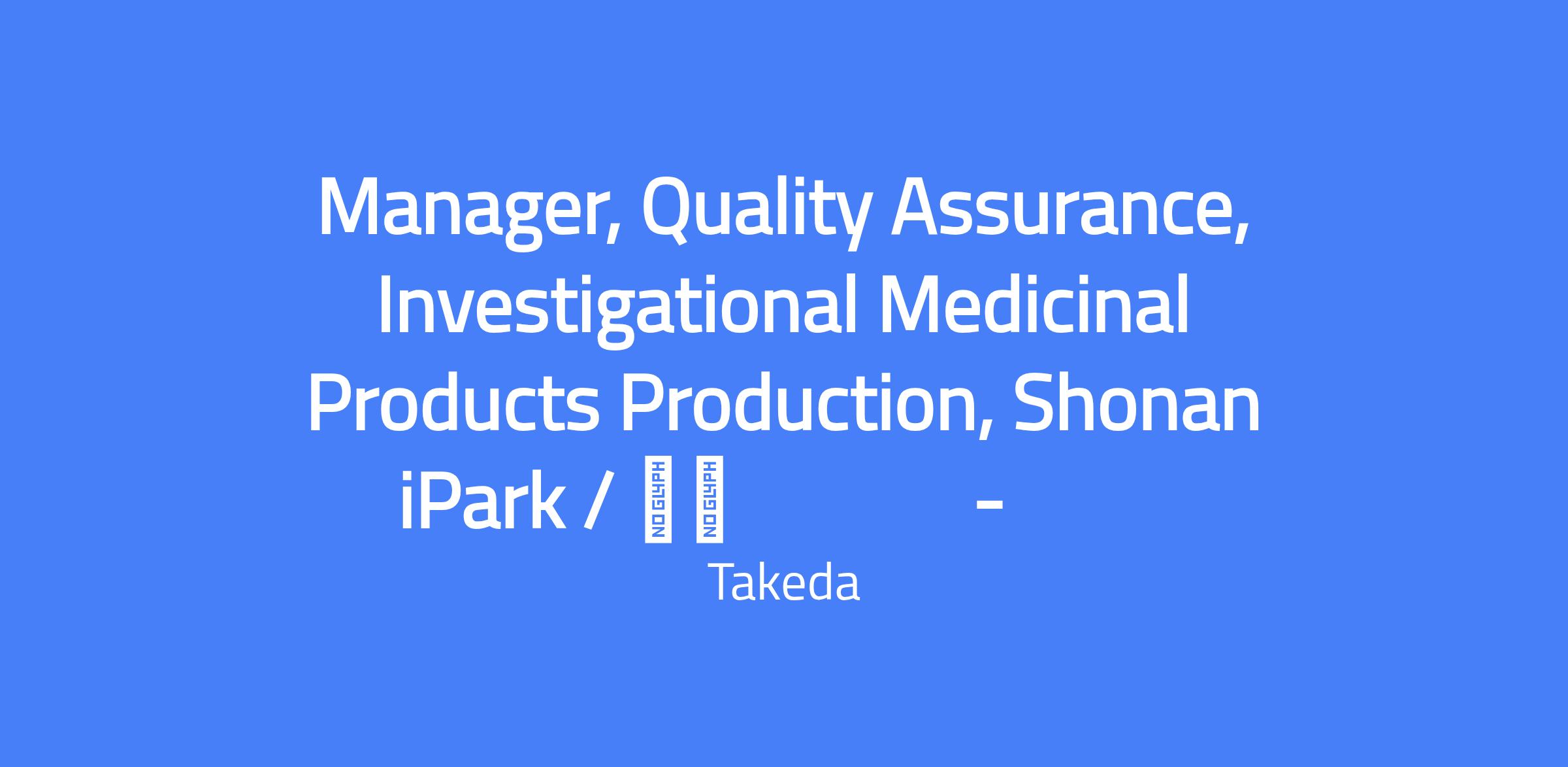 Manager, Quality Assurance for Investigational Medicinal Products Production at Shonan iPark, responsible for quality assurance activities related to GMP-compliant manufacturing of investigational drugs, including qualification/validation review, release, on-site monitoring, change control, investigations, supplier audits, internal and customer audits, and ongoing quality system improvements.