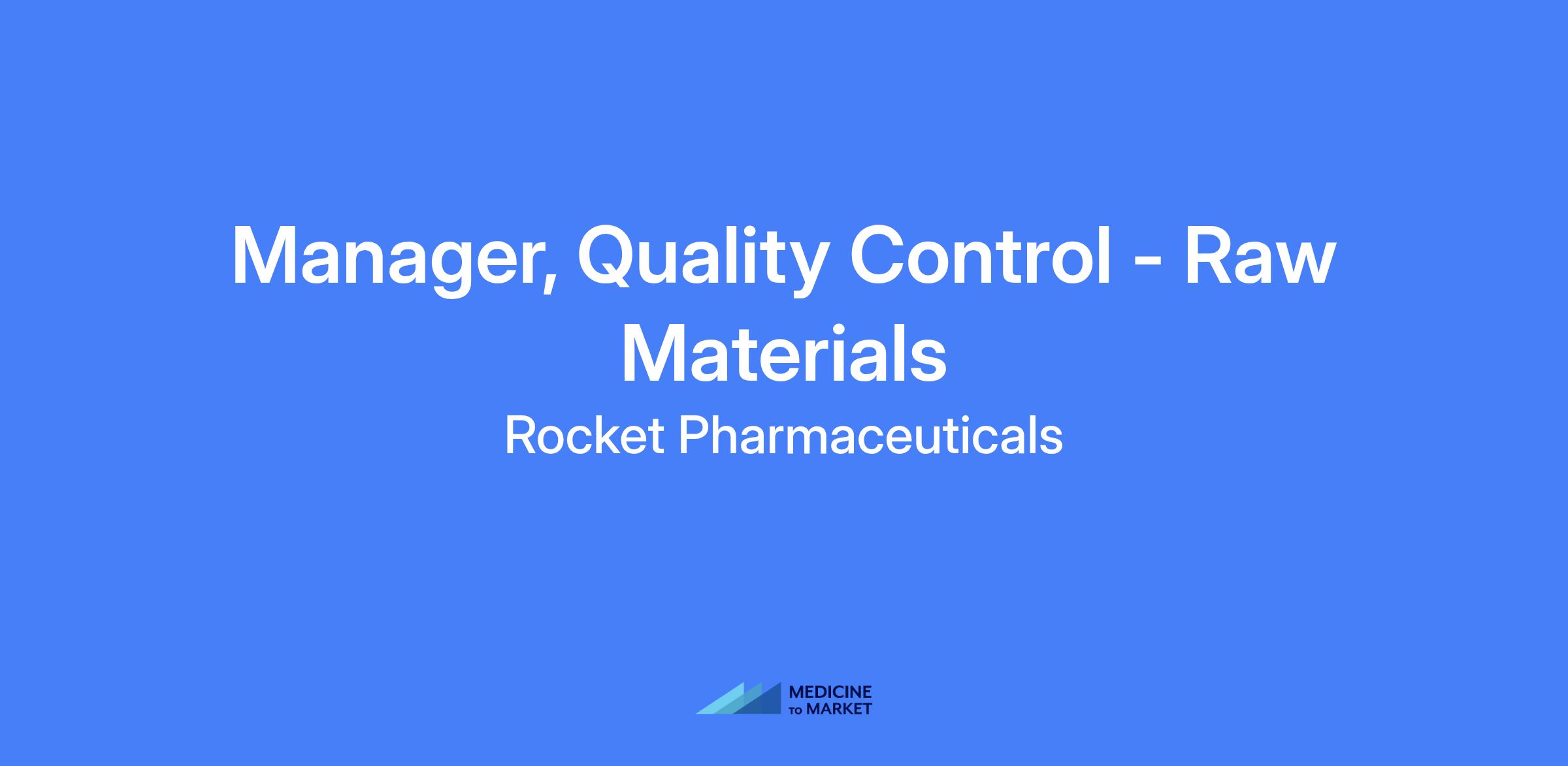 Manager, Quality Control - Raw Materials