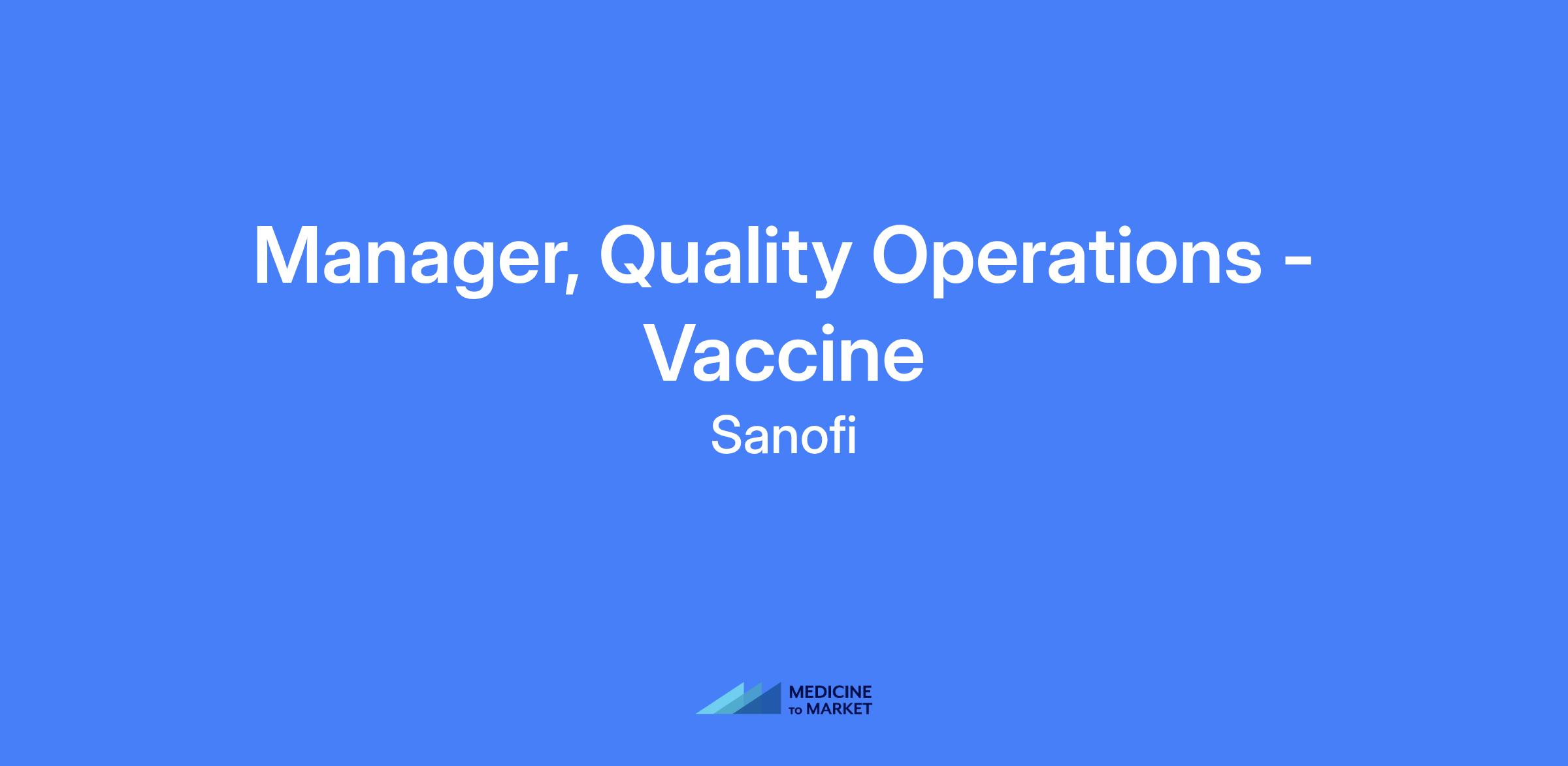 Manager, Quality Operations - Vaccine. Location: Waltham, MA.