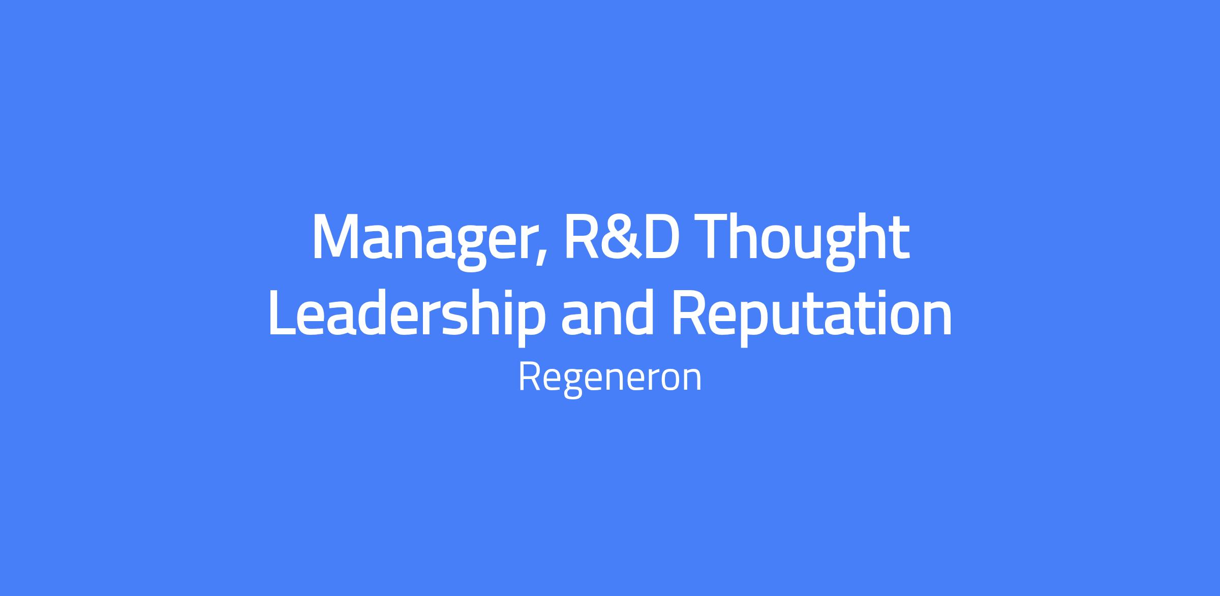 Manager, R&D Thought Leadership and Reputation Communications. You will shape and execute integrated external communications to strengthen Regeneron’s reputation, advance our scientific narrative, and position R&D senior leaders as industry authorities. You’ll translate complex science into compelling stories and orchestrate programs that engage key audiences across channels. This role is based at Sleepy Hollow, NY or Tarrytown, NY with a minimum of four days onsite per week; not open to fully remote or hybrid work arrangements.