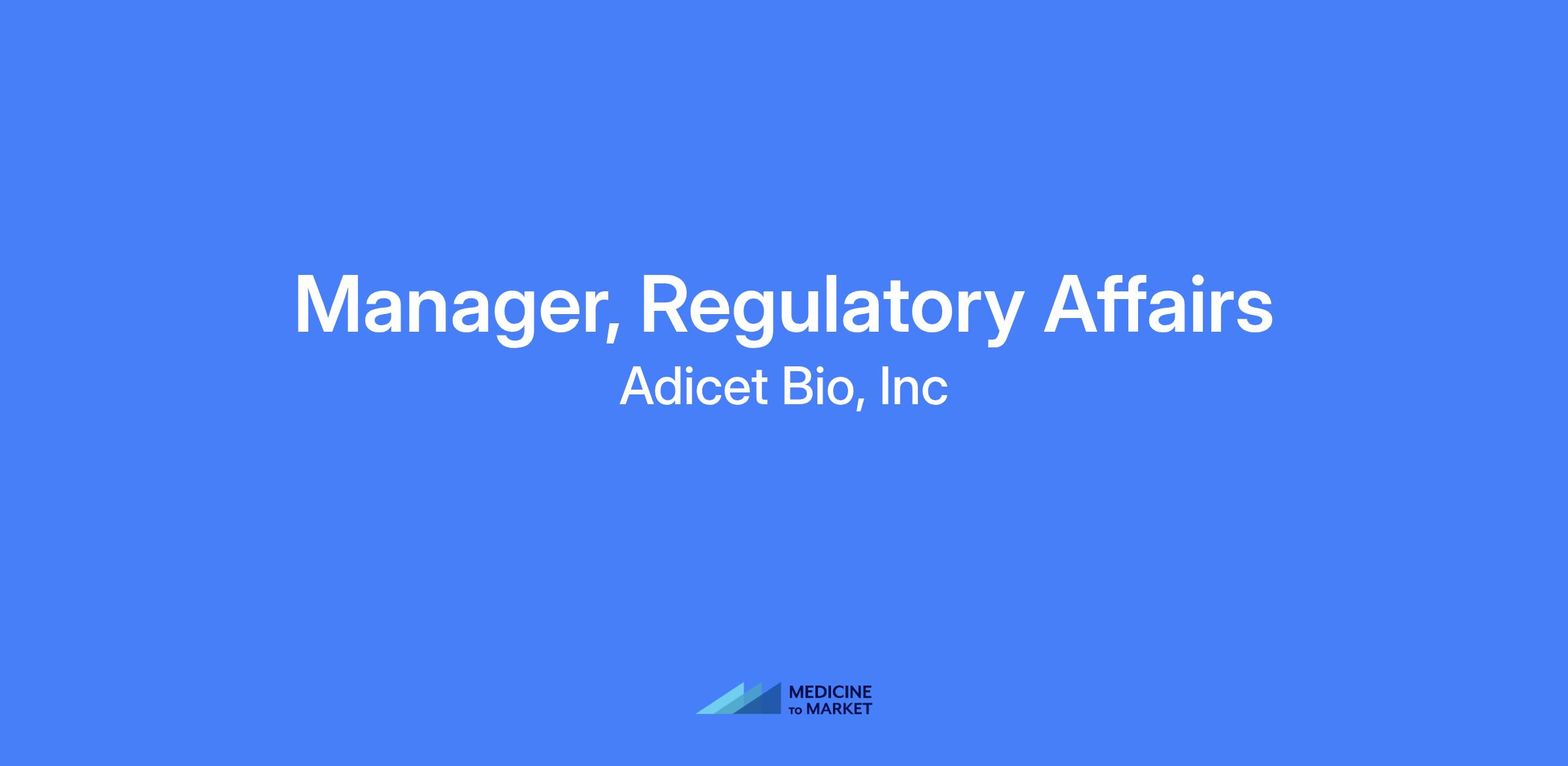 Adicet Bio is seeking a highly motivated Manager, Regulatory Affairs, who is passionate in the field of cell therapy development for oncology and autoimmune patients. The role reports to the Regulatory group and focuses on developing regulatory strategies to support rapid clinical and product development of cell therapies, managing global regulatory implementation of assigned projects across early to late-stage development, and coordinating cross-functionally to meet program objectives.