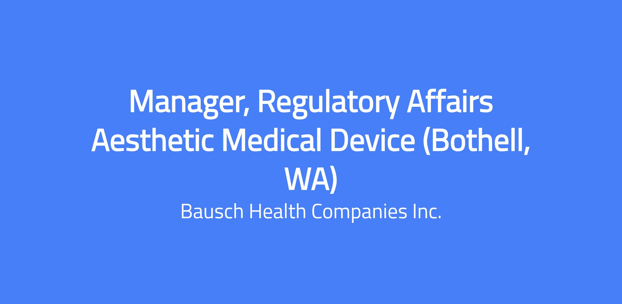 Manager, Regulatory Affairs Aesthetic Medical Device (Bothell, WA). This role focuses on ensuring medical device products comply with environmental, health, and safety regulations at the product level, with emphasis on environmental and chemical compliance. The position supports global market access by integrating environmental compliance requirements into product design, documentation, and lifecycle management.