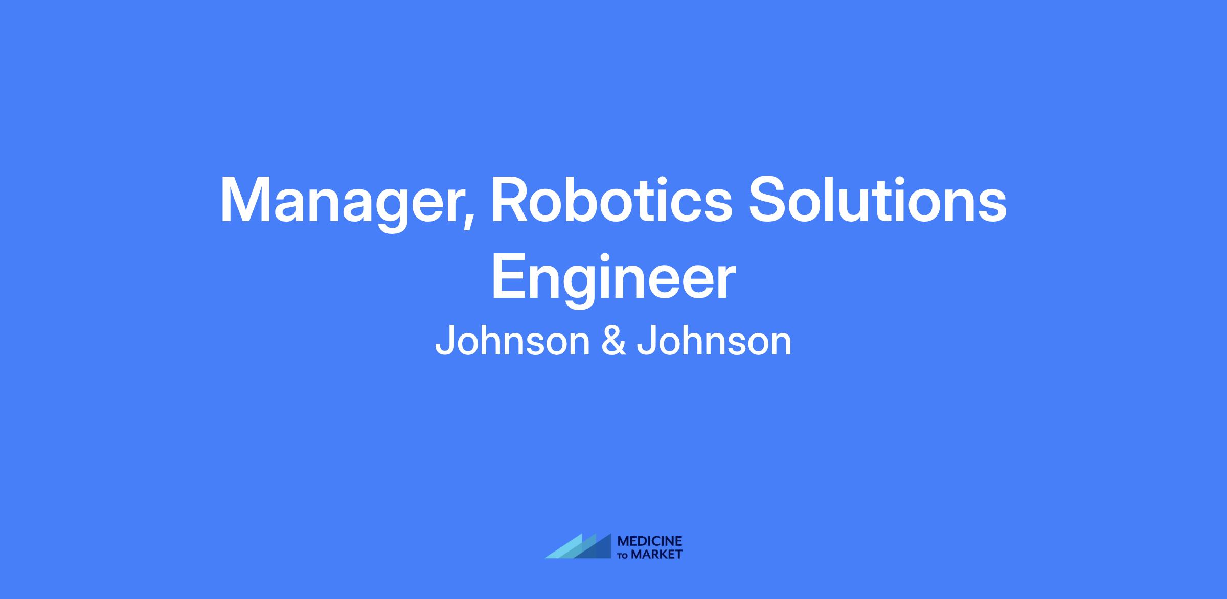 Manager, Robotics Solutions Engineer