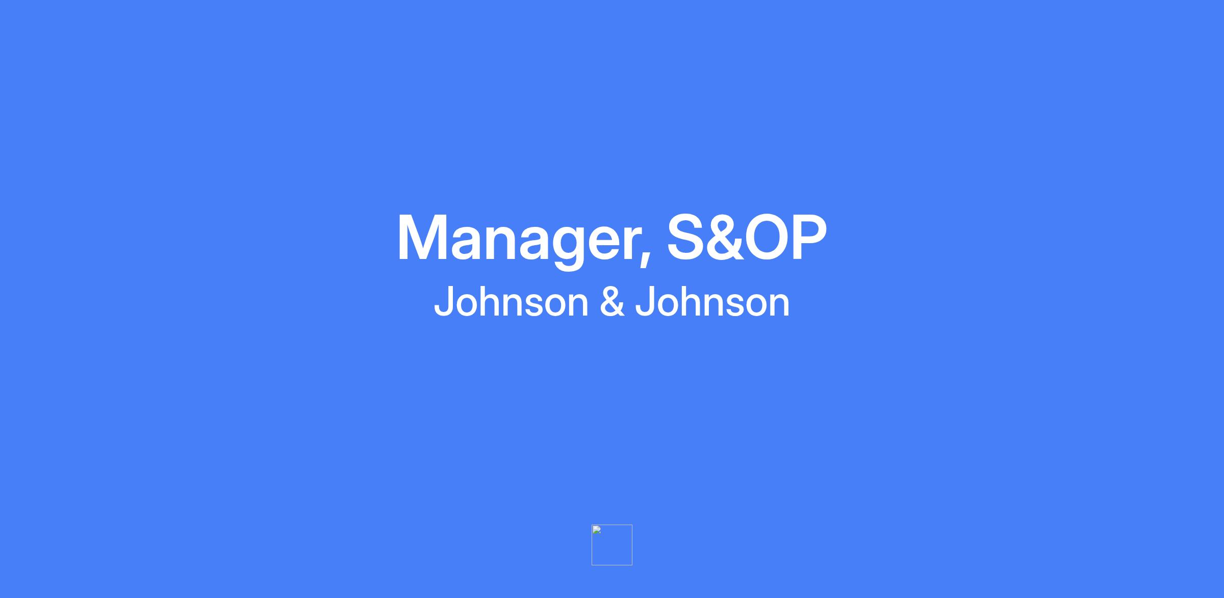 Manager, S&OP for DePuy Synthes Sales, a member of Johnson & Johnson's Family of Companies. Lead the S&OP and inventory integration for the MedTech distribution center, developing a robust 12-24 month forecast and engaging with franchise partners to address capacity, cost, and service improvements.