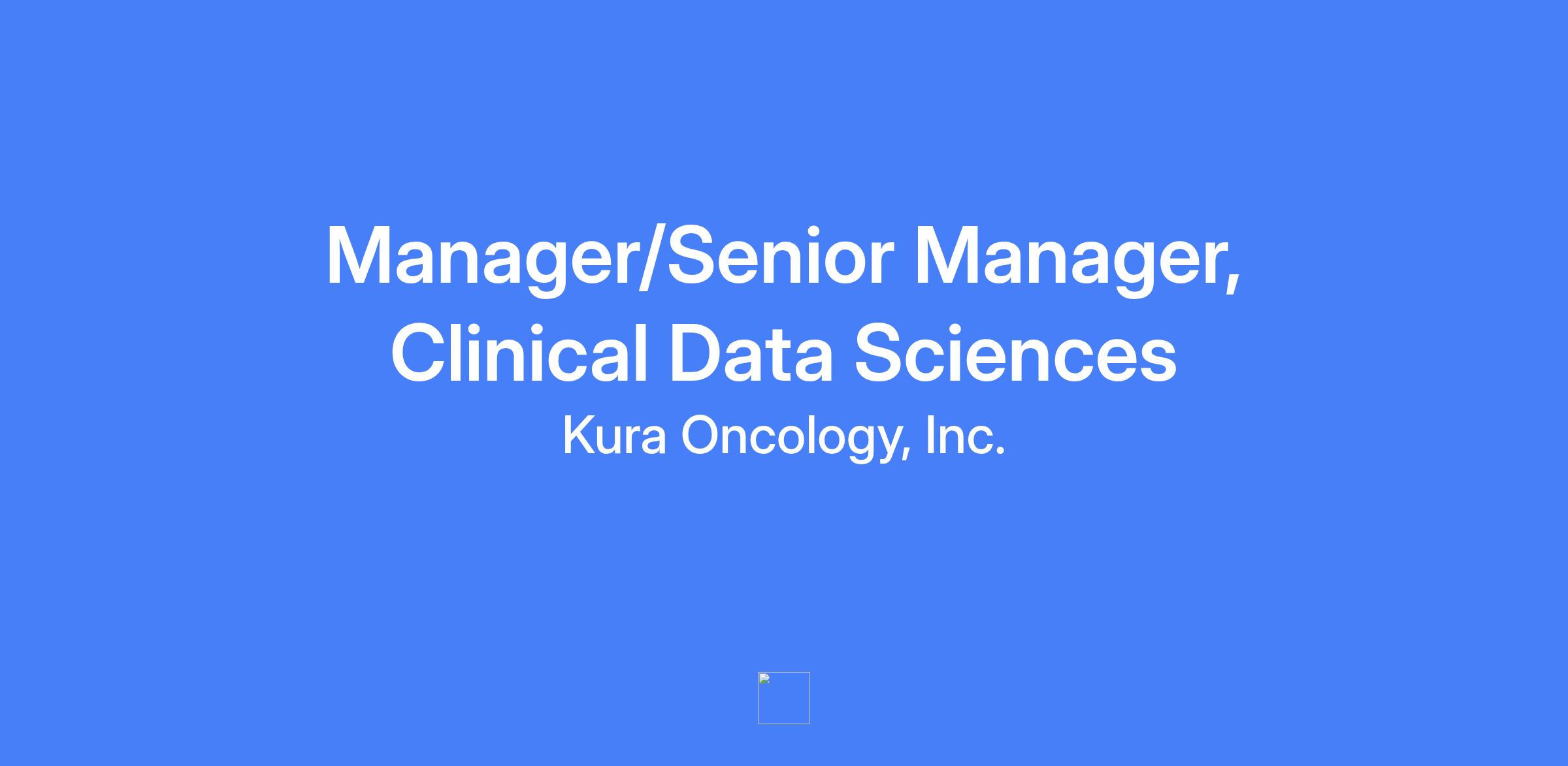 Manager/Senior Manager, Clinical Data Sciences at Kura Oncology. The role focuses on overseeing outsourced data management and EDC activities, coordinating internal study data reviews, and delivering fit-for-purpose clinical data to support study milestones in a oncology-focused biopharma environment.