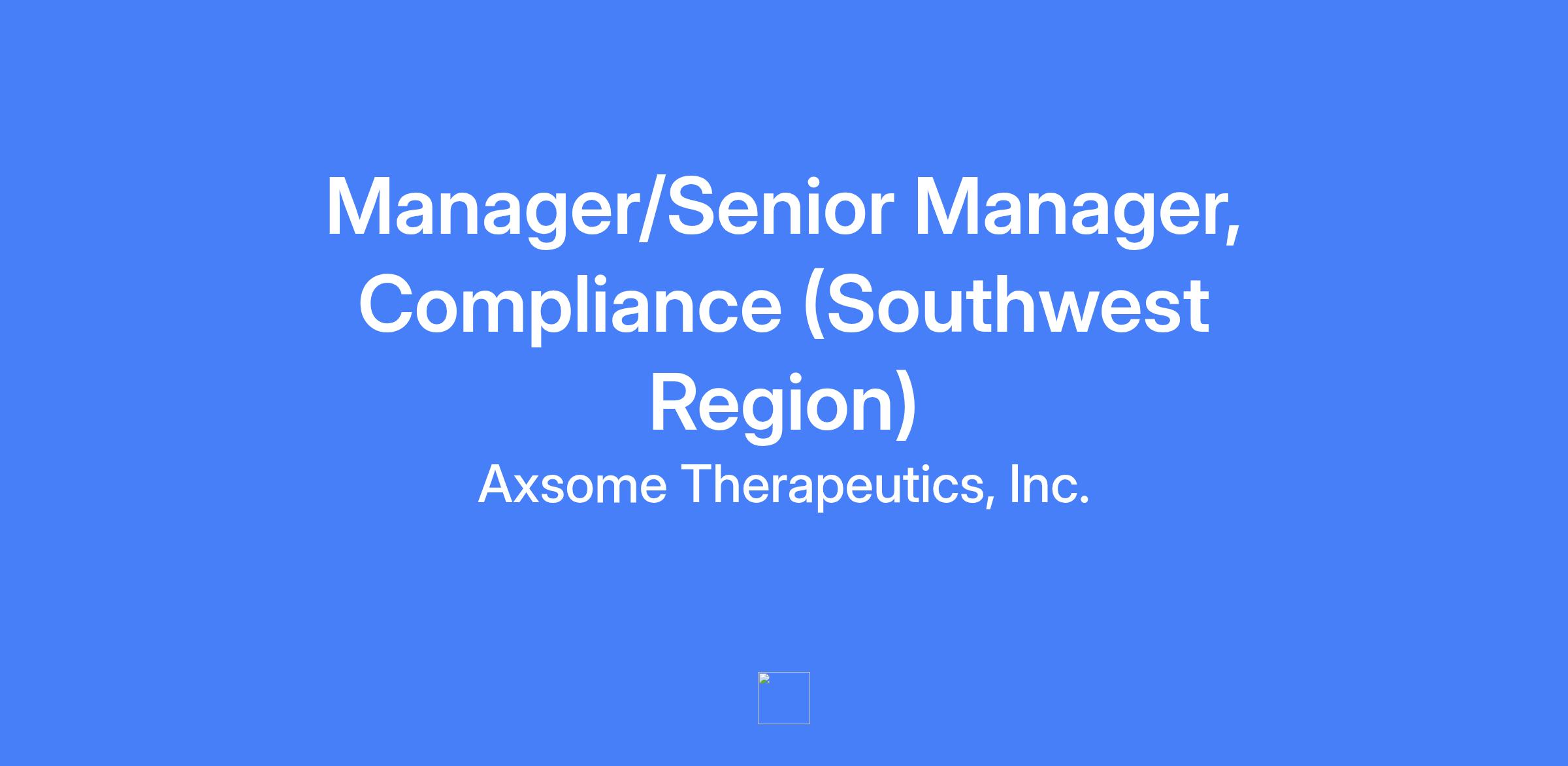 Manager/Senior Manager, Compliance (Southwest Region) is a field-based role that supports Axsome's healthcare compliance program, focusing on policy management, auditing, monitoring of business activities, and HCP payment transparency. The role partners with the Chief Compliance Officer and Directors to manage compliance operations in accordance with company policies and state/federal regulations, including FDA, OIG, and CMS. Extensive travel is required; candidates must reside within the Southwest Region.