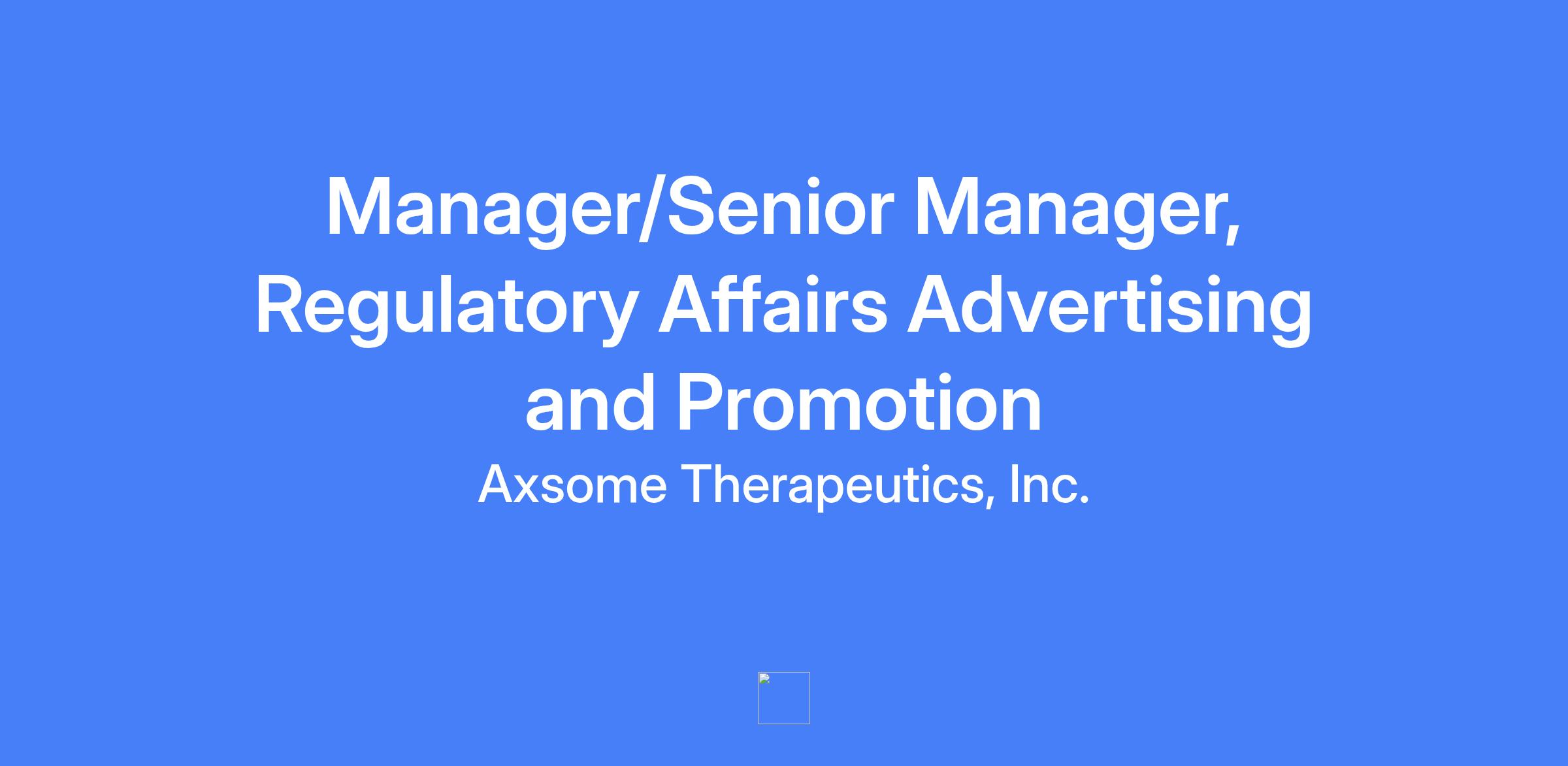Manager/Senior Manager, Regulatory Affairs Advertising and Promotion responsible for providing regulatory guidance on promotional and non-promotional communications to ensure compliance with FDA regulations and internal standards. Collaborates with cross-functional partners and supports submission of materials to the FDA. Reports to the Executive Director, Regulatory Affairs Advertising and Promotion. This role is based at Axsomeโs HQ in New York City with an on-site requirement of at least three days per week.