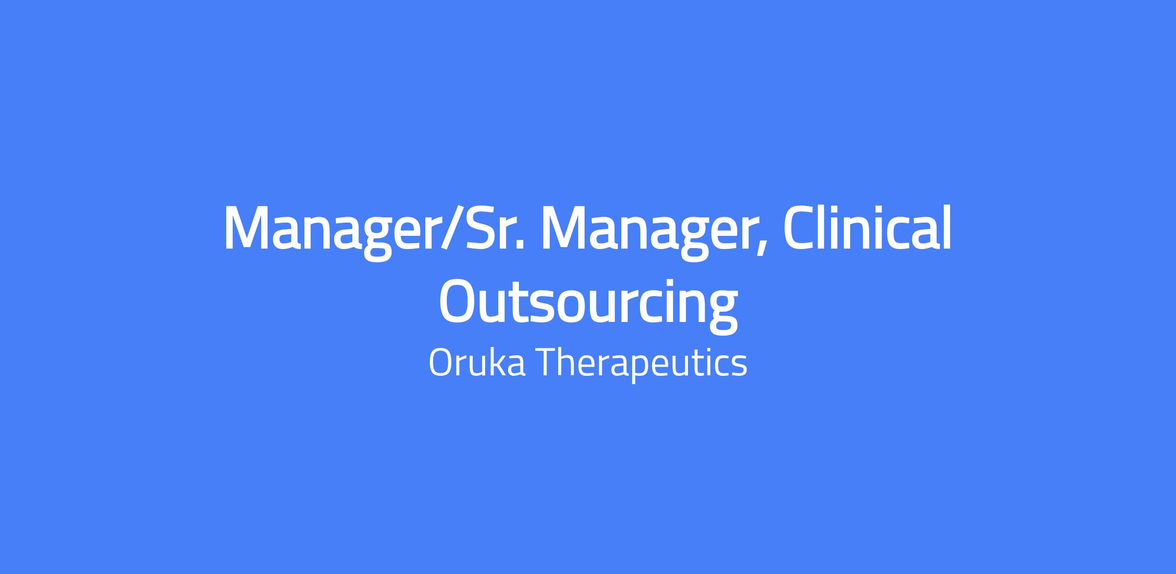 Job Title: Manager/Sr. Manager, Clinical Outsourcing