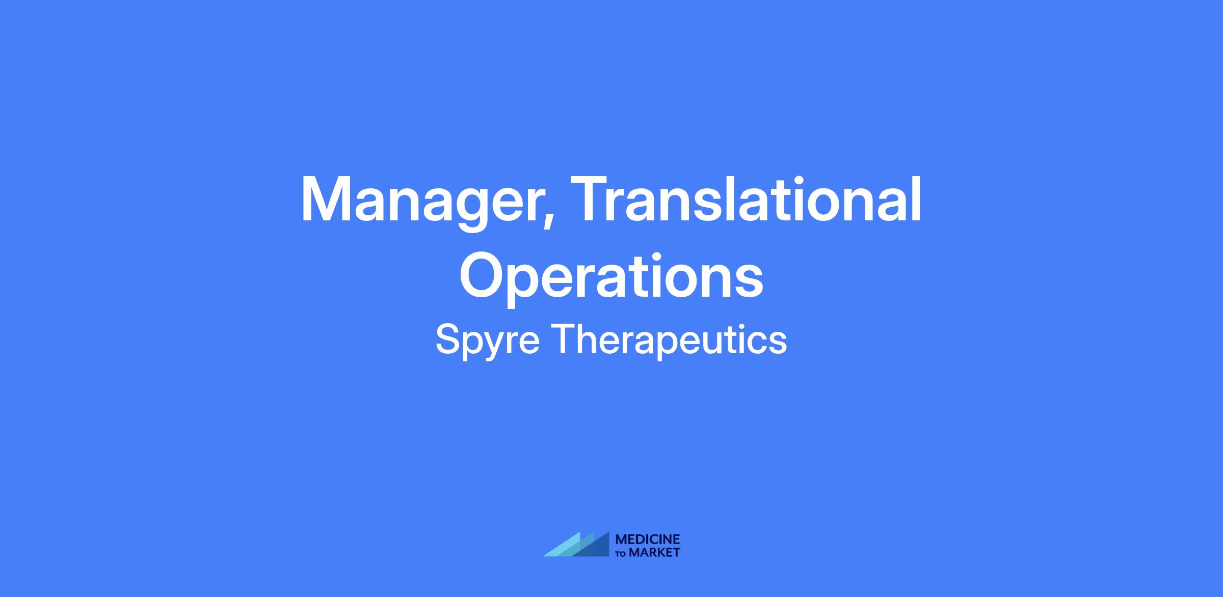We are seeking a highly organized and detail-oriented Manager of Translational Operations to join our growing team at Spyre. As a key member of the Translational Sciences team, you will drive biosample strategies and implementation, overseeing multiple global clinical trials. You will collaborate cross-functionally both internally and externally to optimize the collection and utilization of our clinical trial samples and data to meet protocol requirements and scientific goals.