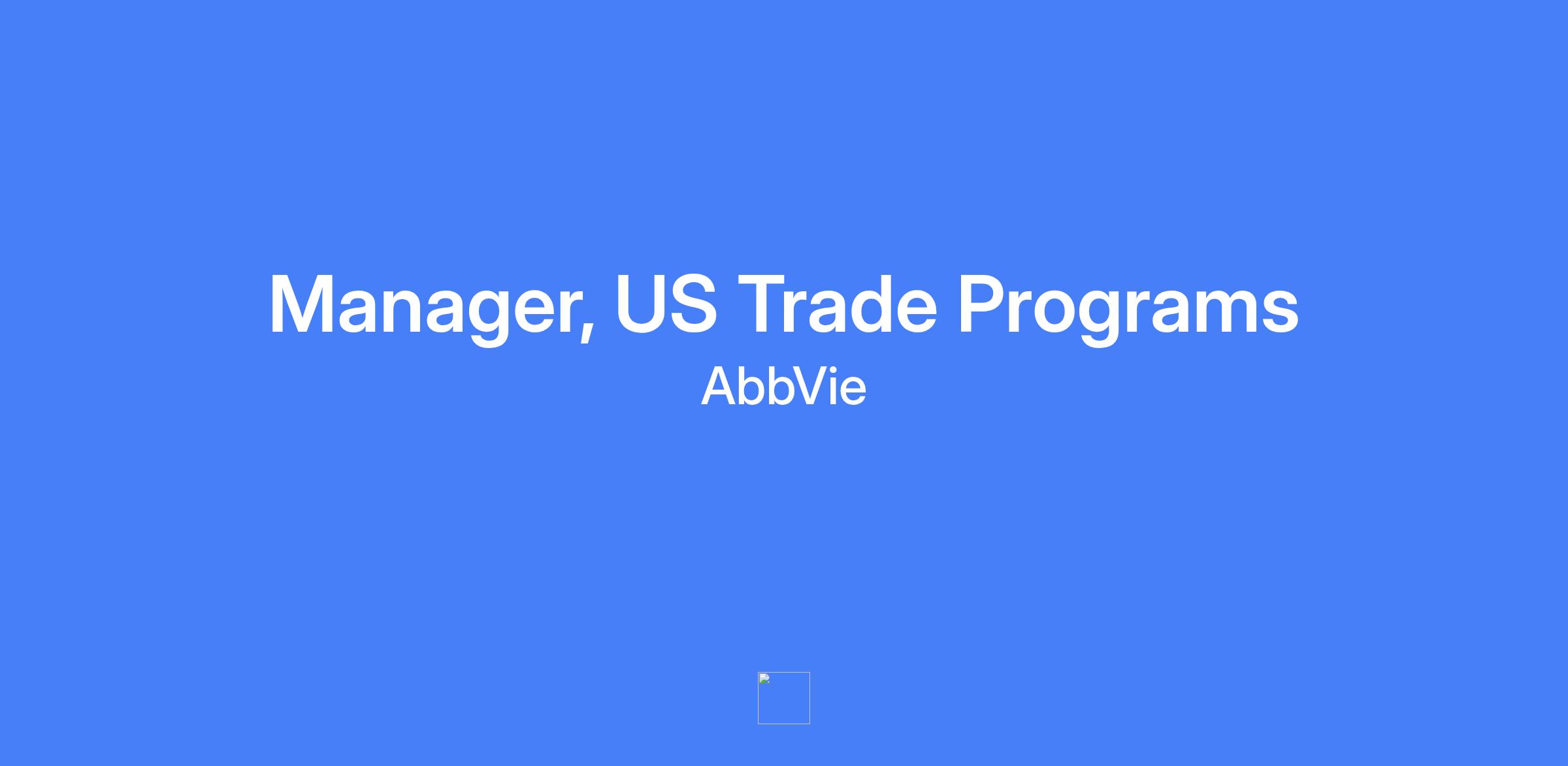 Manager, US Trade Programs at AbbVie. Leads a US/PR trade compliance team (3-4 people) and oversees US/PR operational trade programs, including Foreign Trade Zones and other special trade programs. Partners across Operations, R&D, and Commercial to optimize trade compliance operations, enhance decision-making, and mitigate risks.