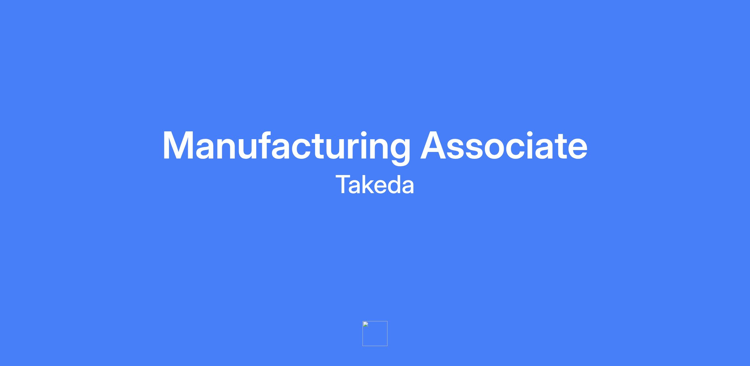 Manufacturing Associate at Takeda. Perform routine and critical manufacturing operations in Cell Culture, Purification, Solution & Equipment Prep areas, and operate production equipment according to SOPs for clinical and/or commercial products. Carry out cGMP manufacturing operations utilizing SOPs, Batch Records and Form Preps. Reports to Manufacturing Supervisor. This is a day shift role on a rotating 2-2-3 schedule.