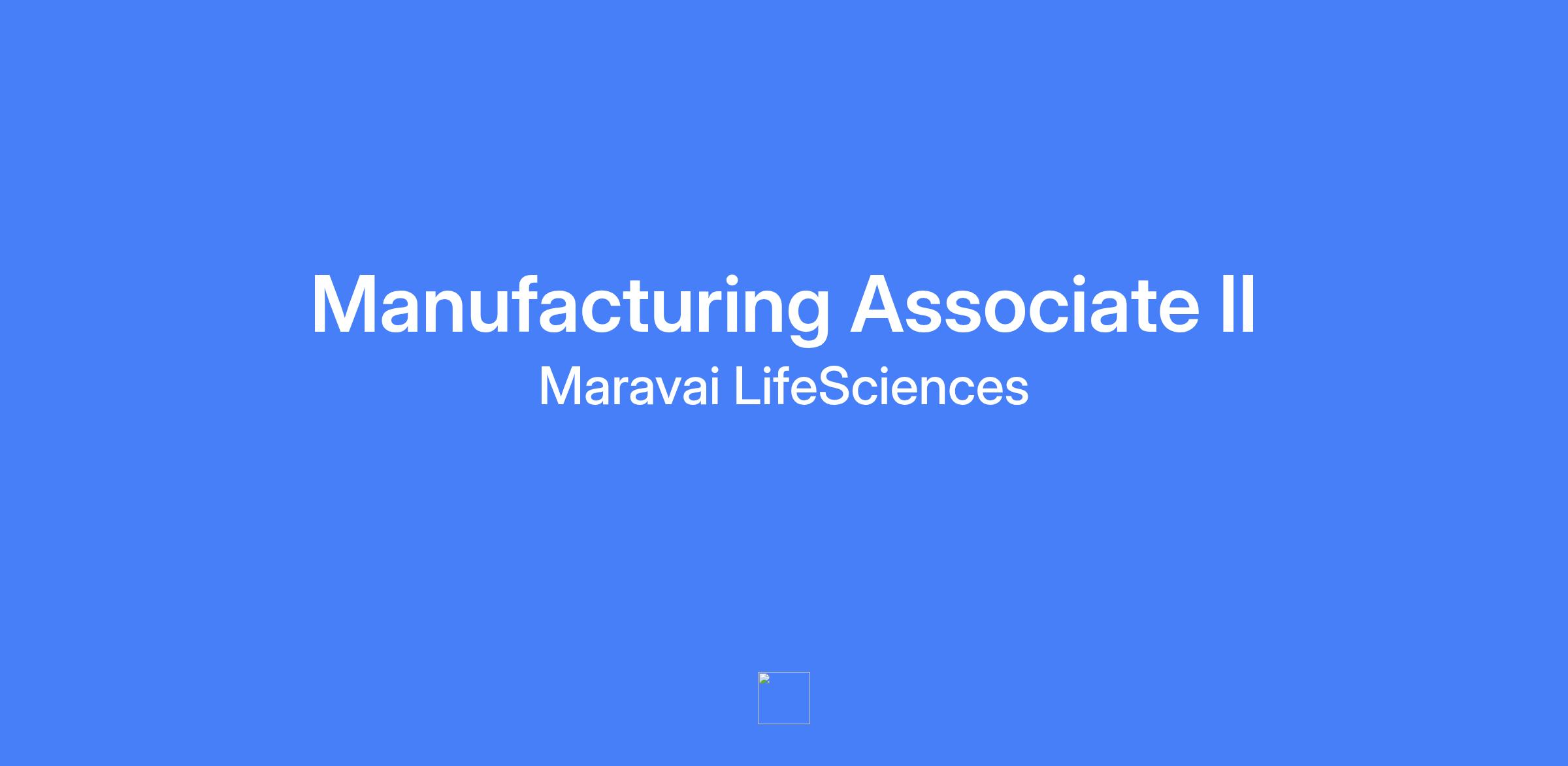 Manufacturing Associate II at Maravai LifeSciences. Primary producer within the operational unit, guiding new team members in learning technologies; produces research and clinical grade components and products by setting up, cleaning, operating, and maintaining equipment within ISO classified space.