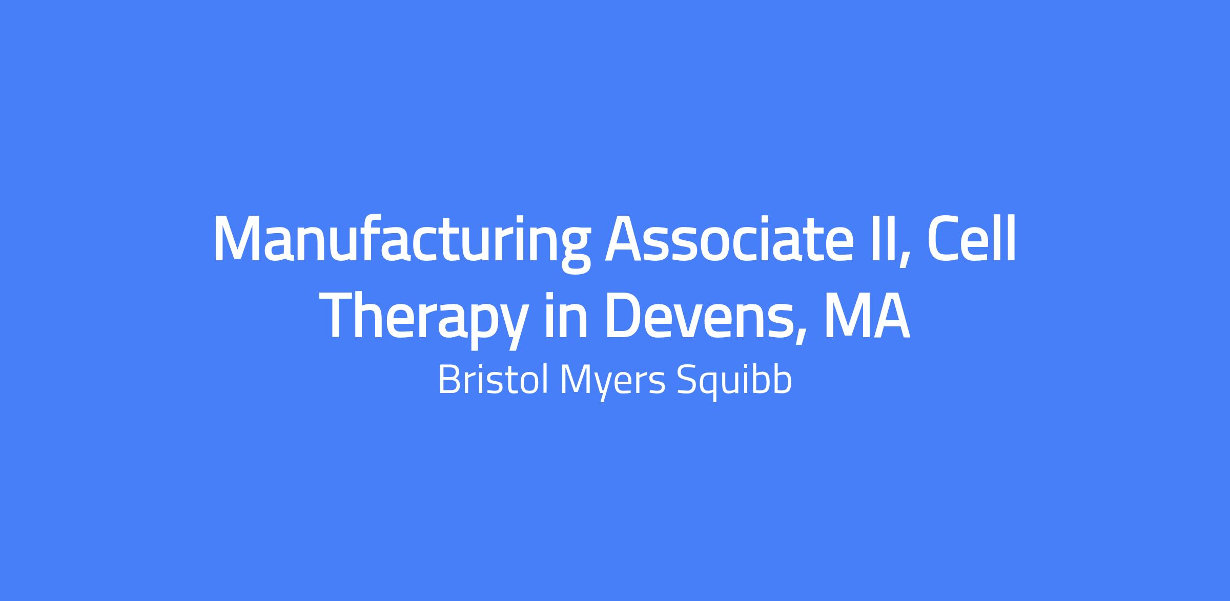 Manufacturing Associate II, Cell Therapy (Shifts: 6amβ6pm rotating incl. holidays/weekends; or 6pmβ6am rotating incl. holidays/weekends)