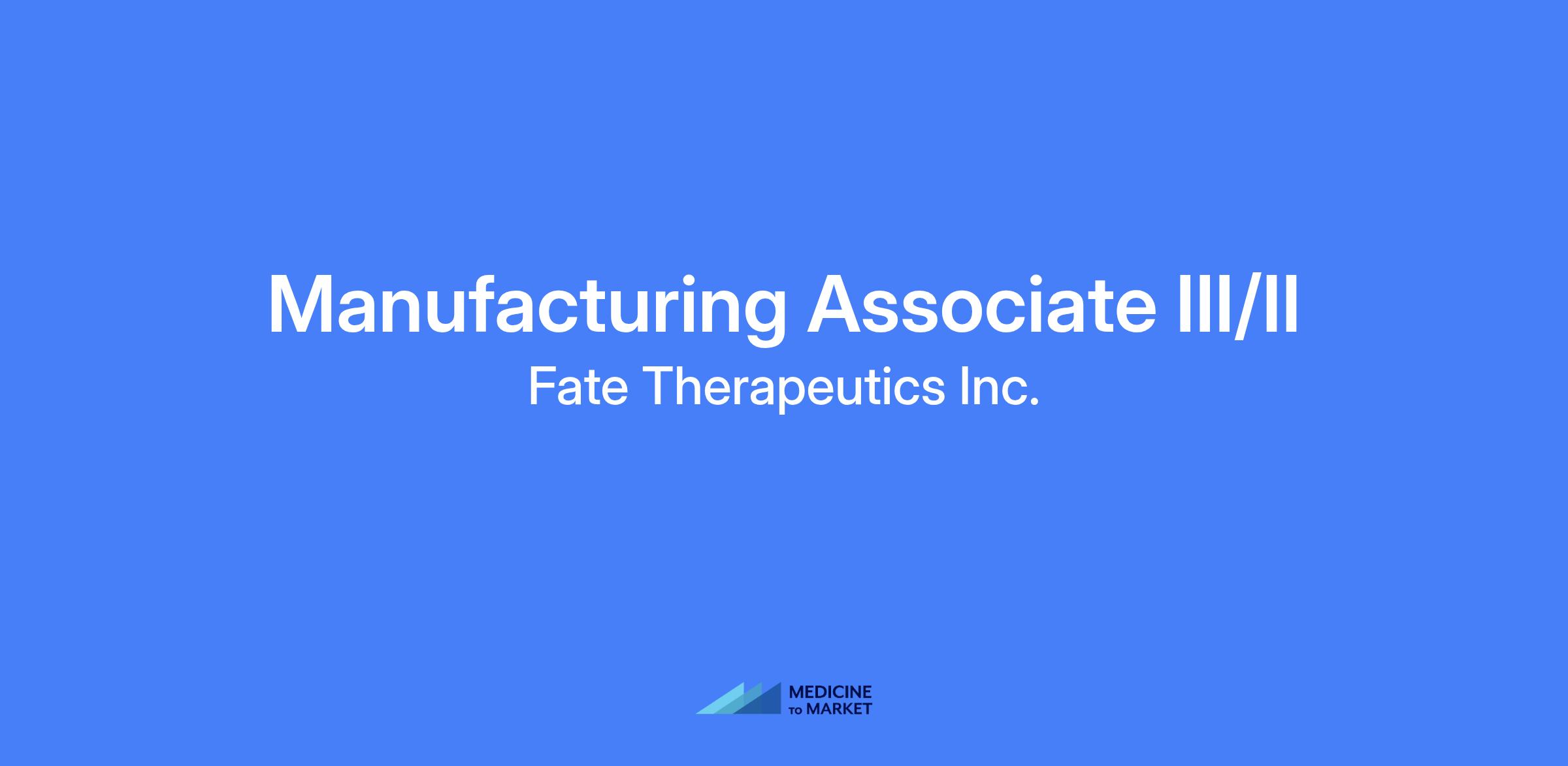Manufacturing Associate III/II to join our Manufacturing team to execute the manufacturing of iPSC-derived allogenic cell therapy products in a cGMP compliant clean room environment. Responsible for executing batch records, following SOPs, and performing manufacturing logistical support per cGMP, GDP and safety standards. Develop and apply skills across production activities including aseptic techniques, equipment operation, product sampling and enumeration, reagent and material preparation and cell processing. Full-time, non-exempt, located in San Diego, CA.
